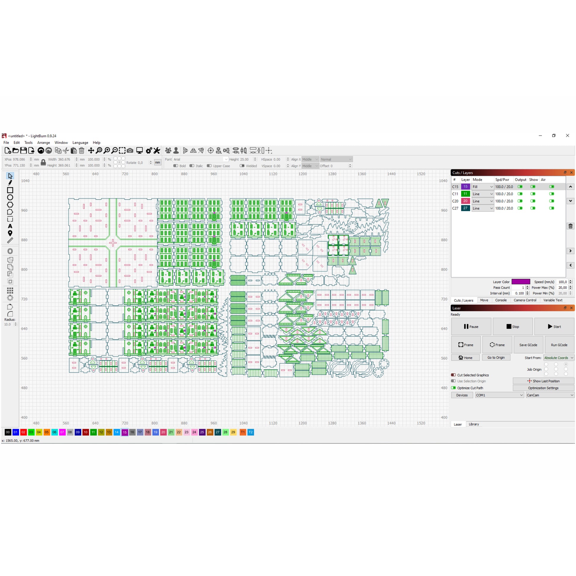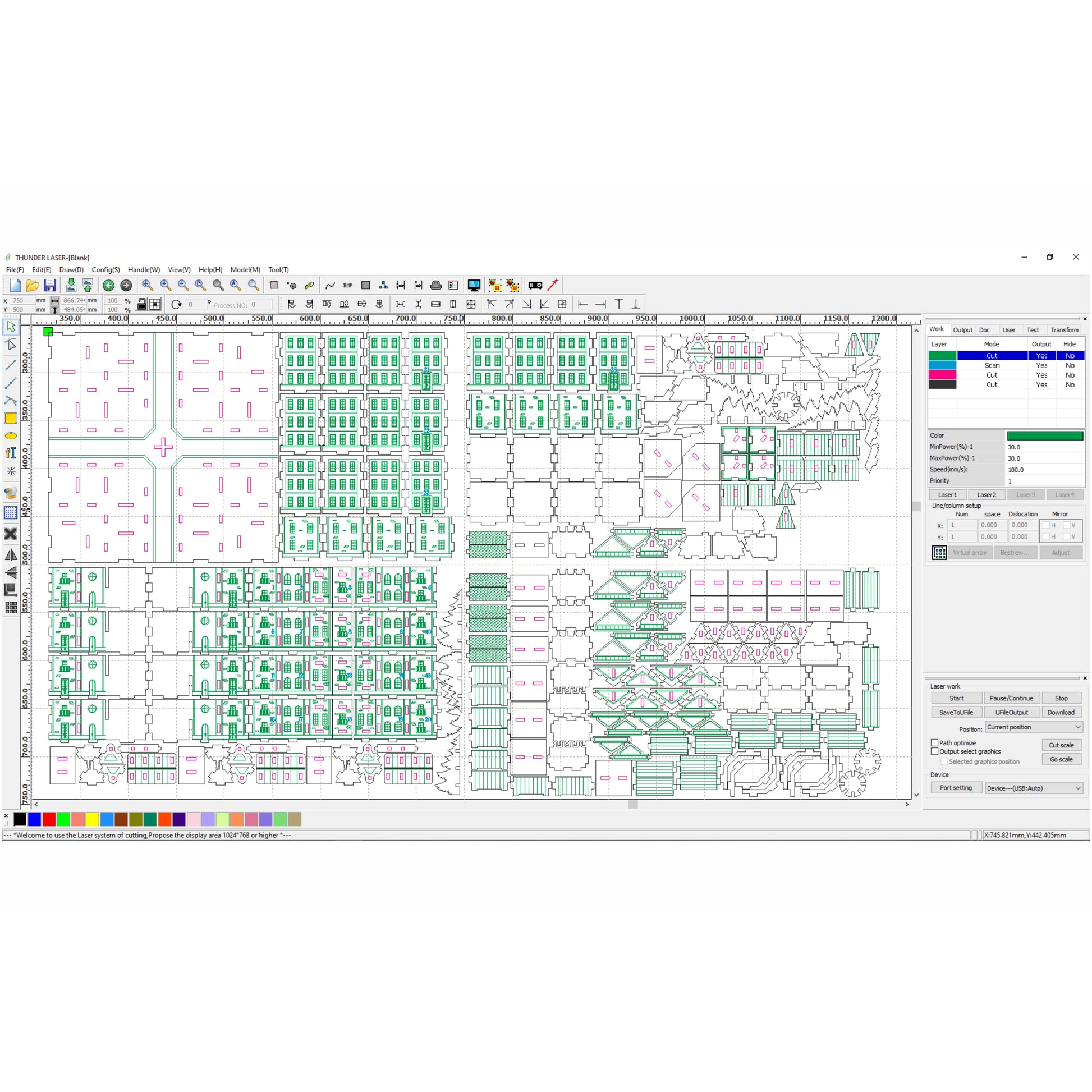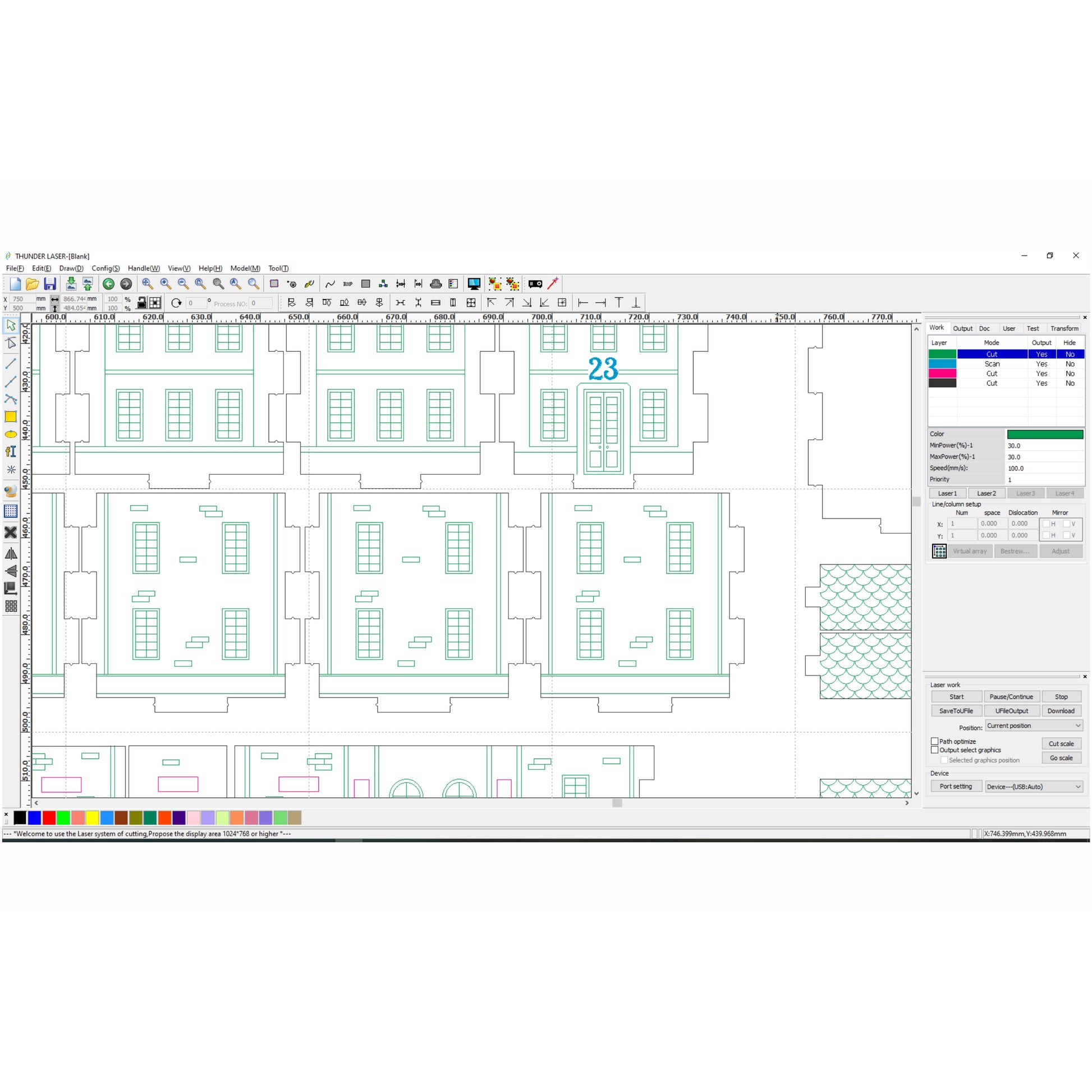 green color - draw (cut with low power and high speed)