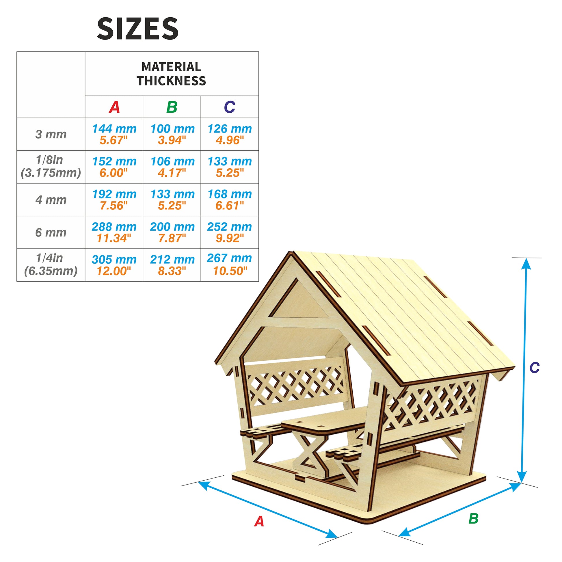 🤏Material thickness (versions of the files): 3mm, 1/8''(3.175mm), 4mm, 6mm, 1/4''(6.35mm)