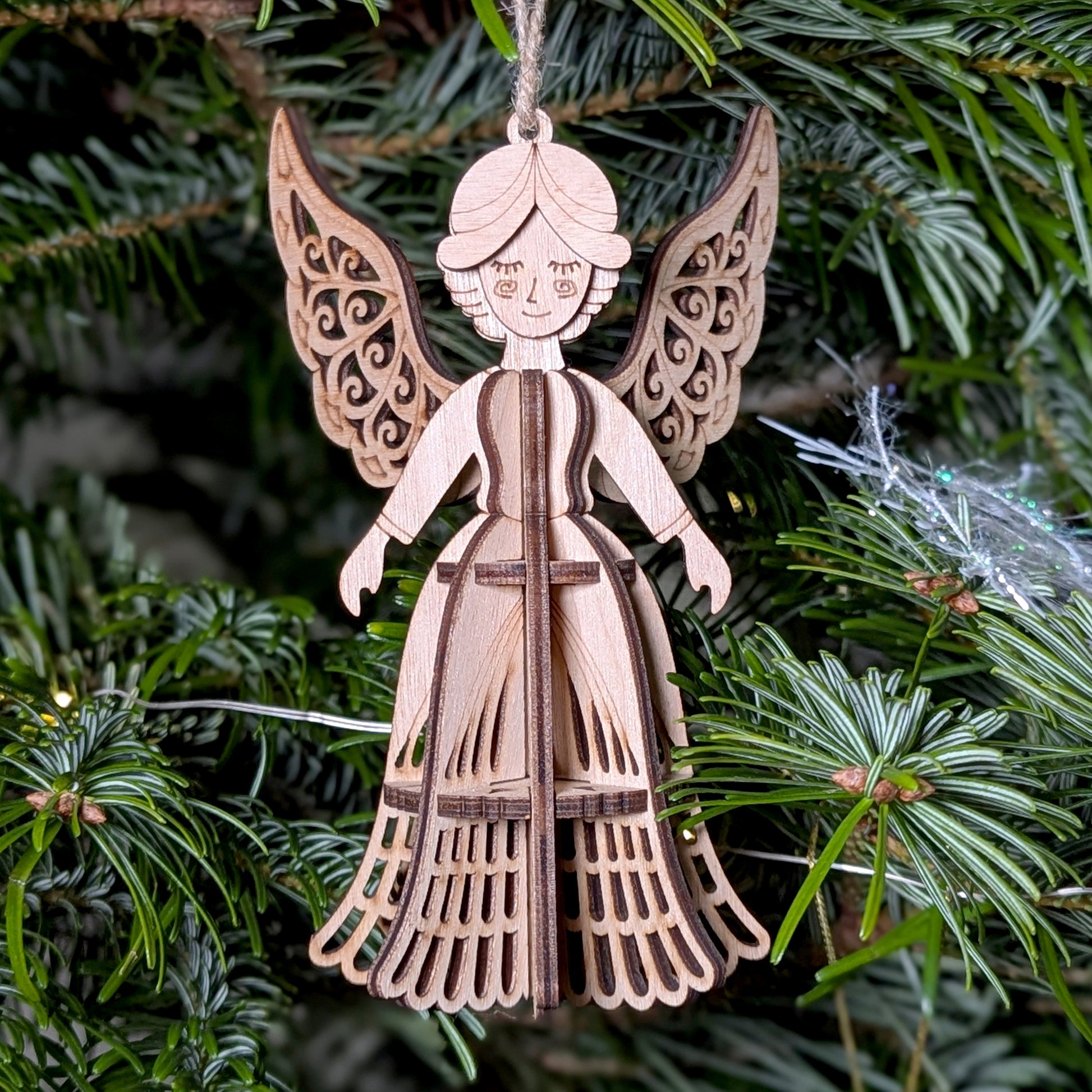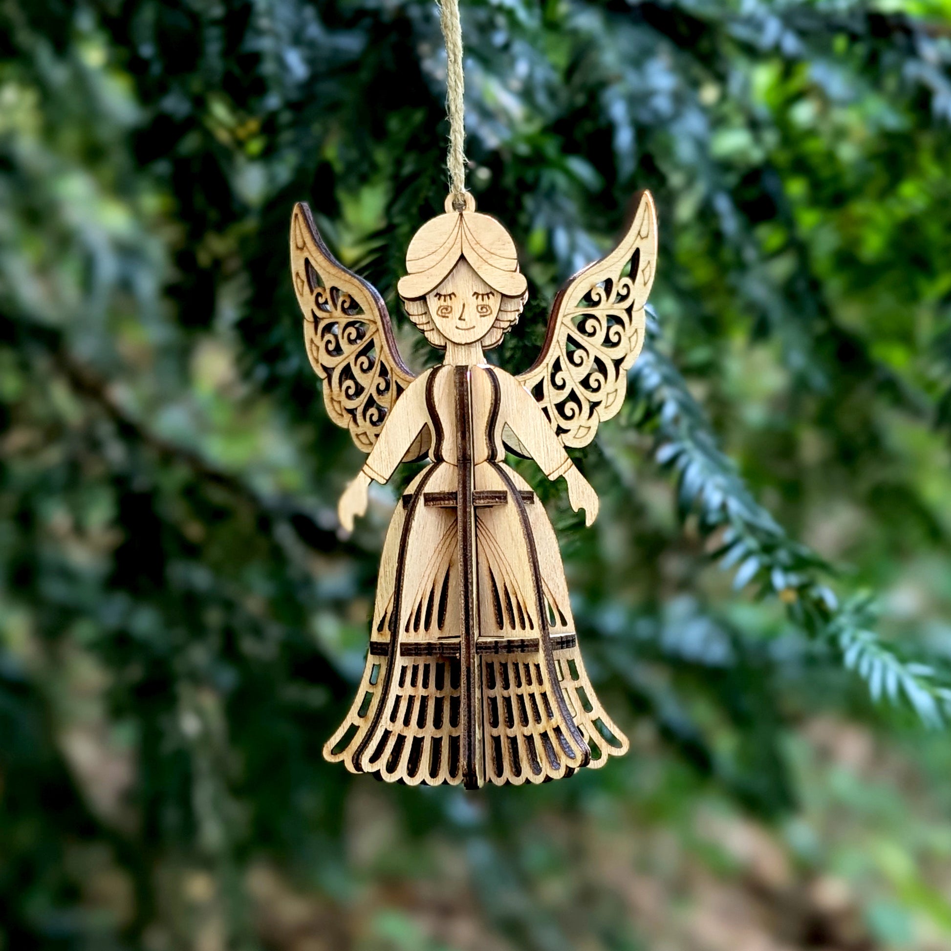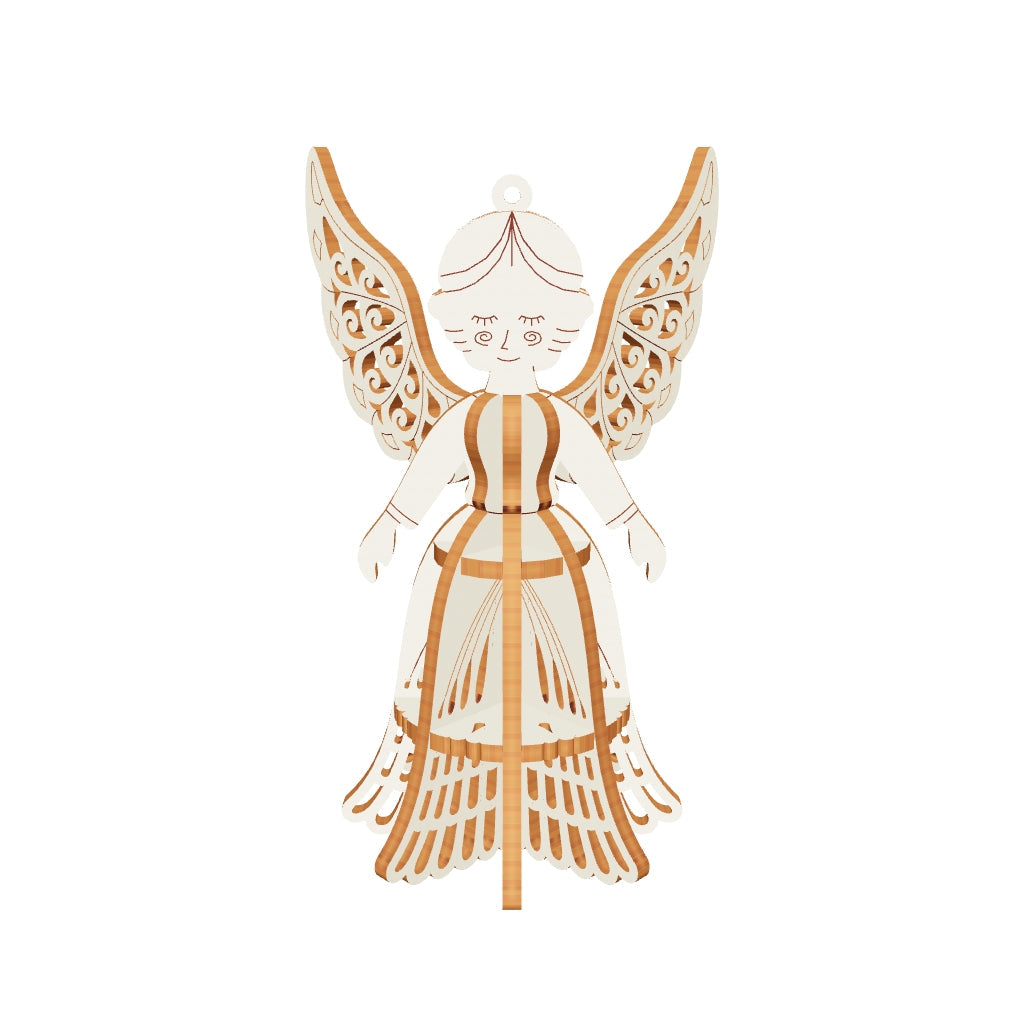 This laser cut Angel ornament features intricate detailing that captures the serene beauty of an angel. Ideal for hanging on your Christmas tree, decorating your home, or giving as a thoughtful gift, this ornament brings a sense of peace and joy to any setting.