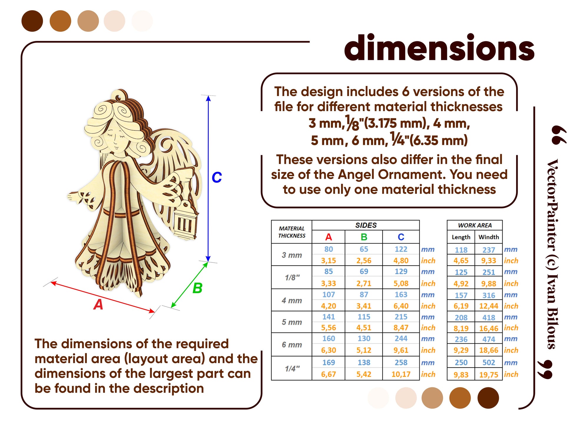 🤏Material thickness (versions of the files): 3 mm, 1/8'' (3.175 mm), 4 mm, 5 mm, 6 mm, 1/4'' (6.35 mm)
