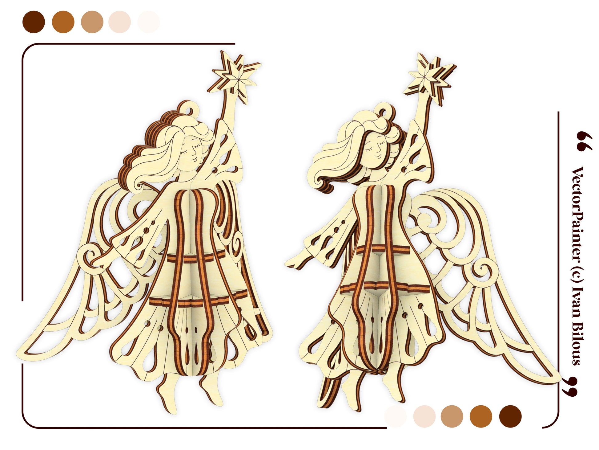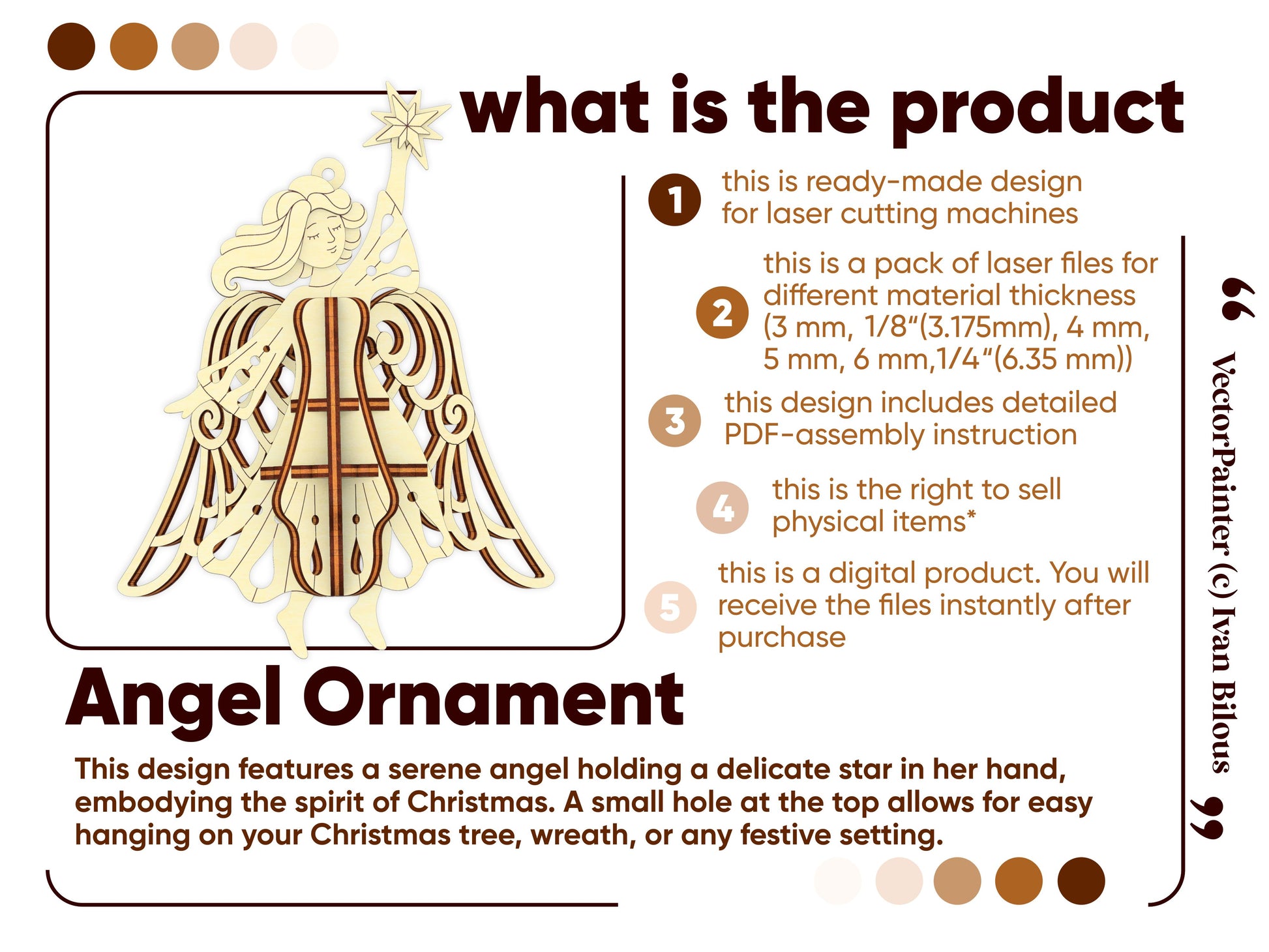 This elegant Laser Cut Angel Ornament design features a serene angel holding a delicate star in her hand, embodying the spirit of Christmas. Perfect for Christmas Tree.