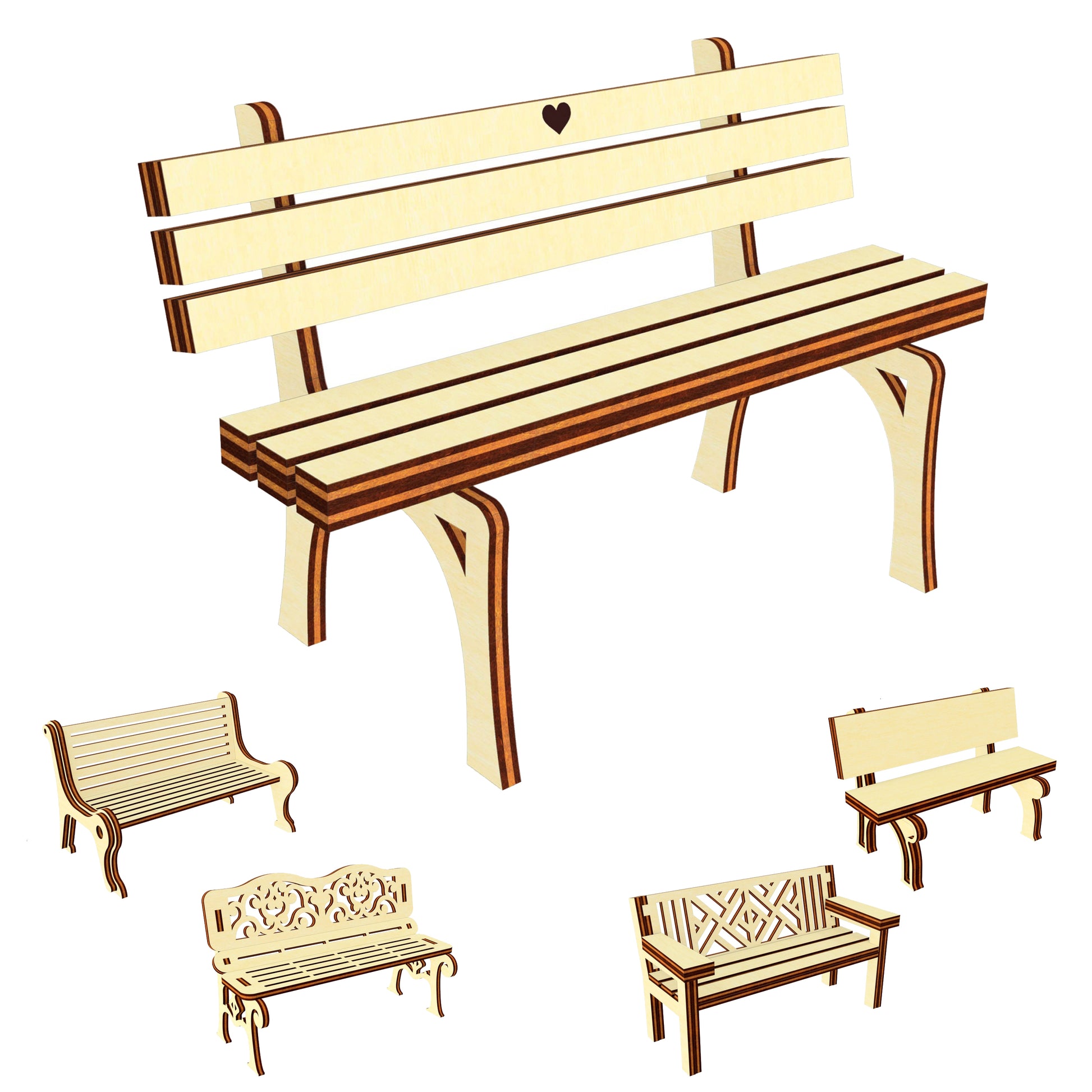 These are small miniatures of benches that can be used both for decoration and as memorial benches or doll furniture. The design includes 5 different benches of approximately the same size