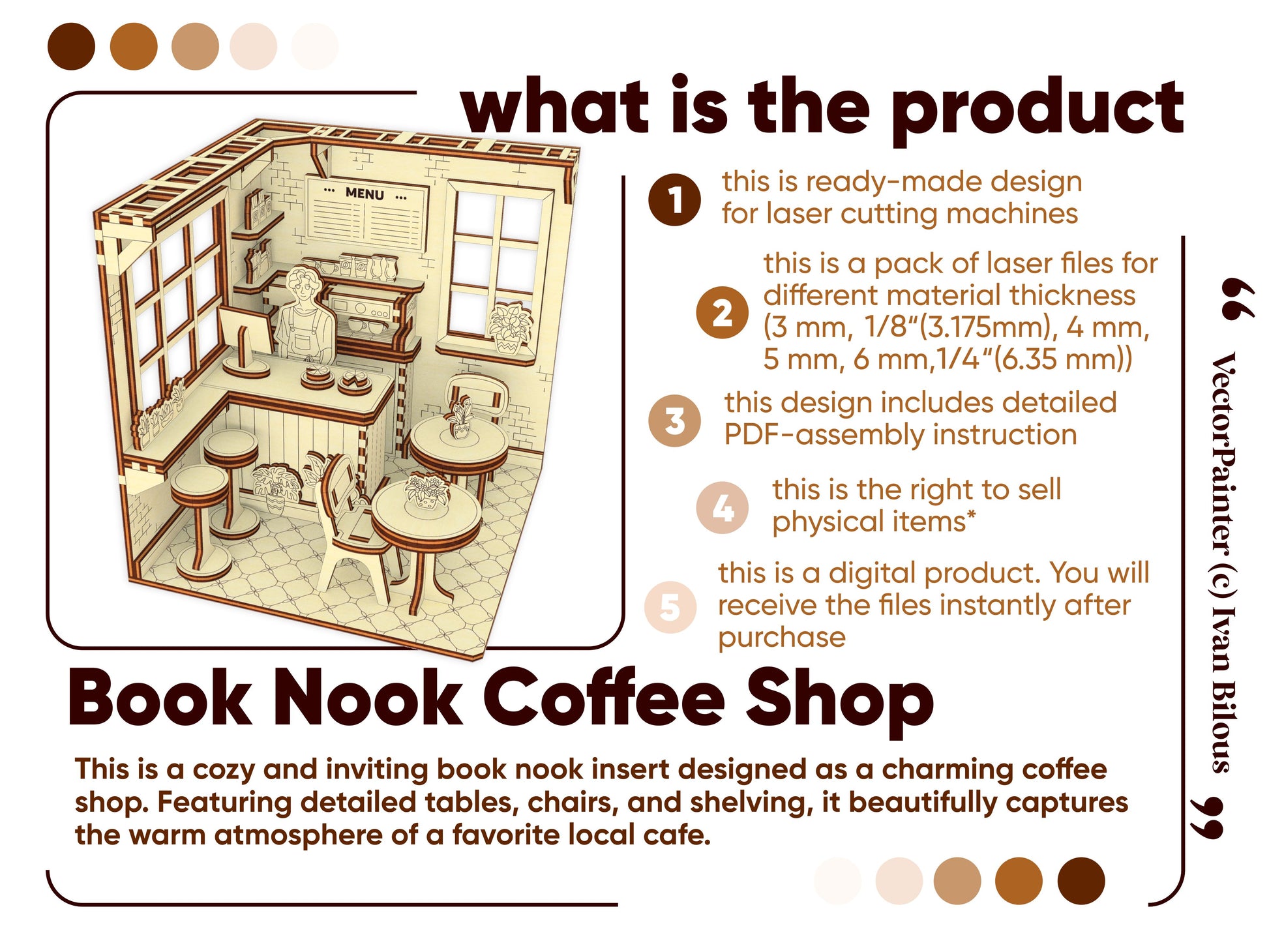 🎨 Laser cut design Book Nook Coffee Shop 🎨