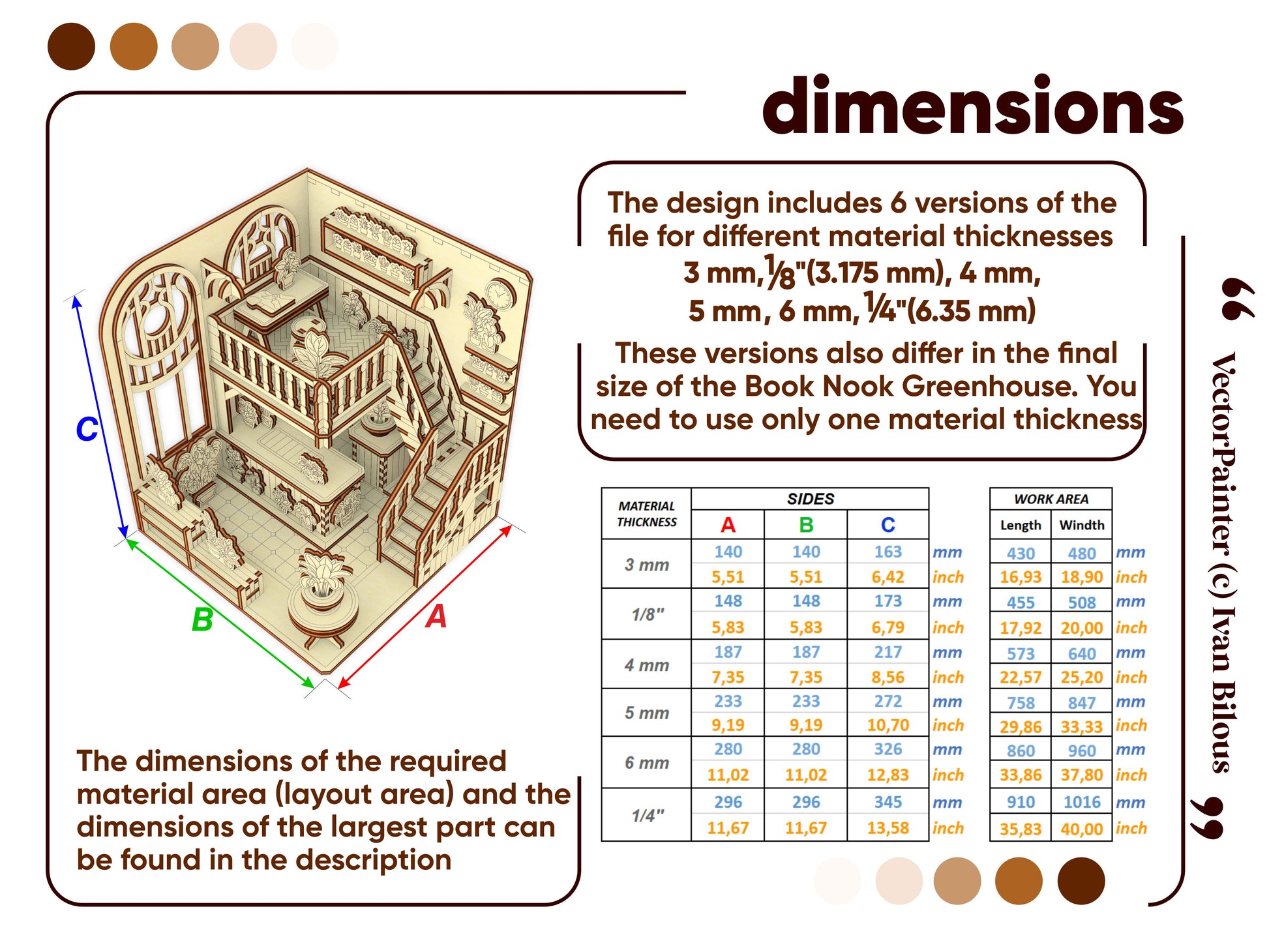 🤏Material thickness (versions of the files): 3 mm, 1/8'' (3.175 mm), 4 mm, 5 mm, 6 mm, 1/4'' (6.35 mm)