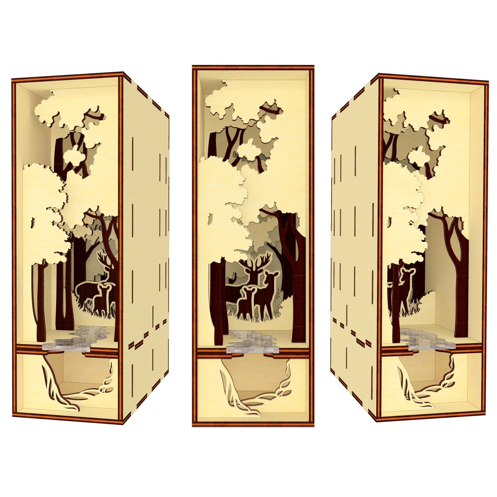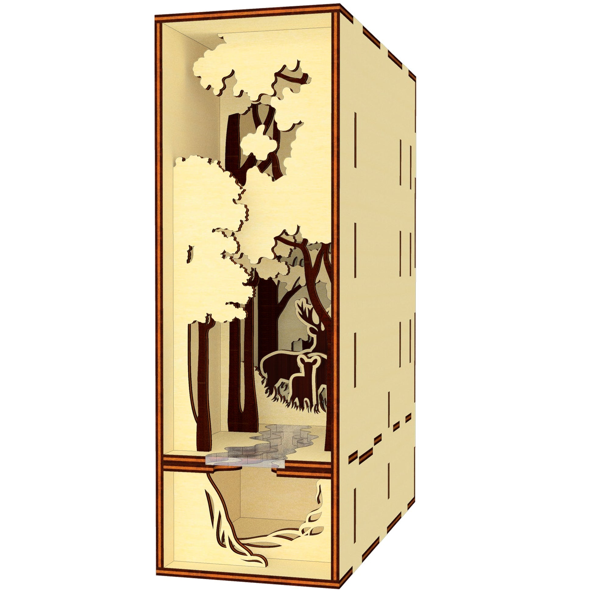 A book nook is a product that fits on a bookshelf between books and visualizes a small world, some scene or history.