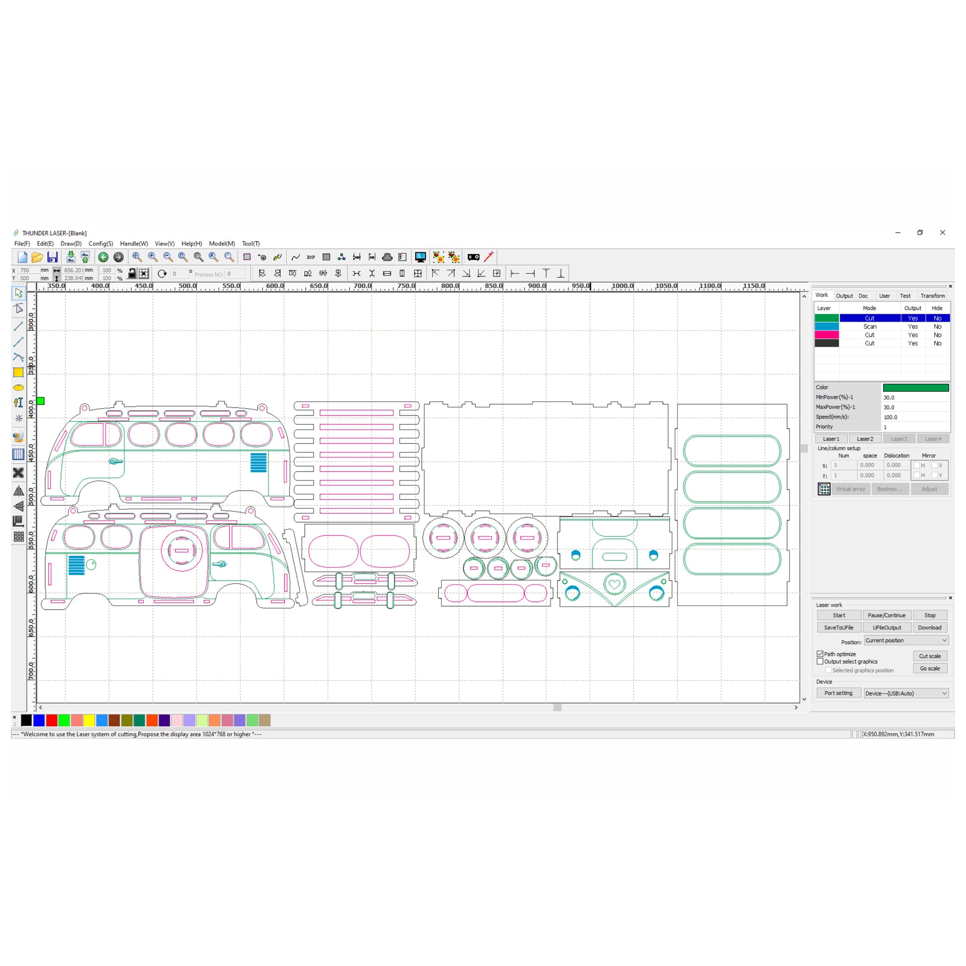 green color - score (cut mode with low power and high speed)