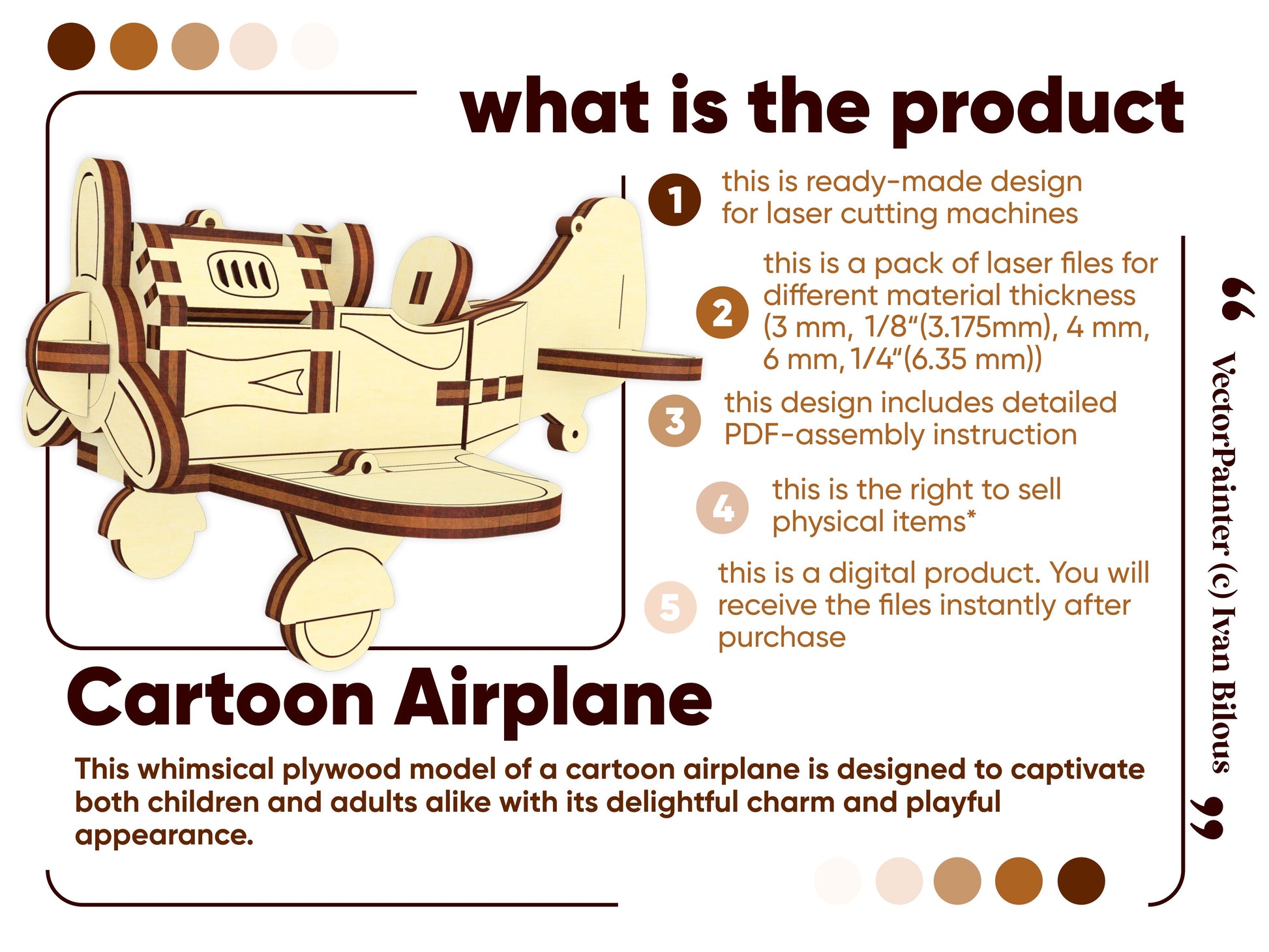 🎨 Laser cut design "Cartoon Airplane" 🎨