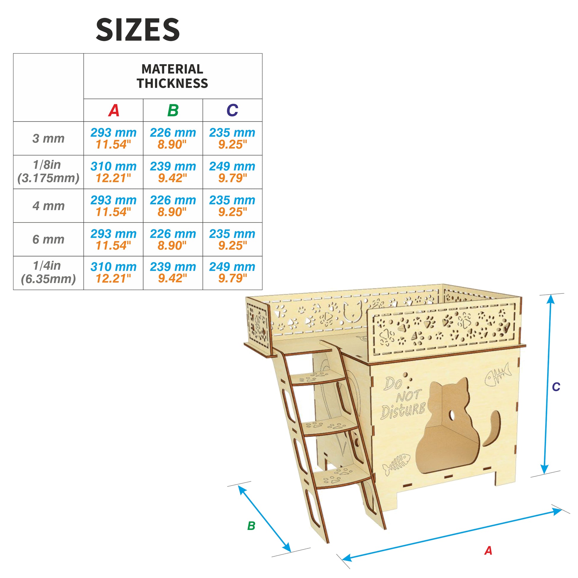 🤏Material thickness (versions of the files): 3mm, 1/8''(3.175mm), 4mm, 6mm, 1/4''(6.35mm)