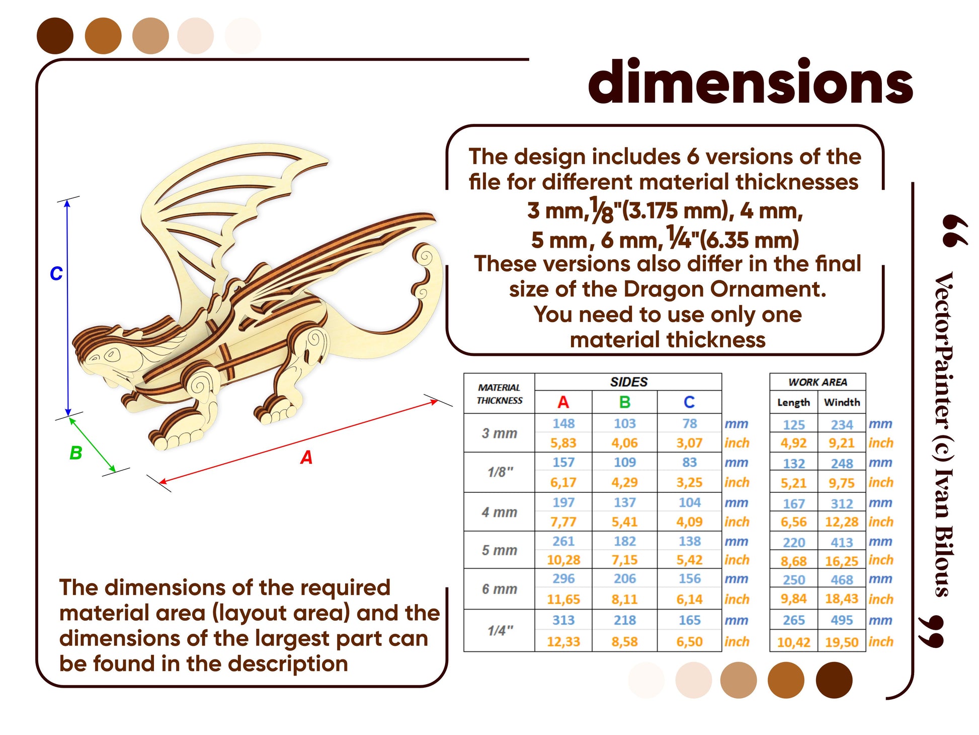 🤏Material thickness (versions of the files): 3 mm, 1/8''(3.175 mm), 4 mm, 5 mm, 6 mm, 1/4'' (6.35 mm)
