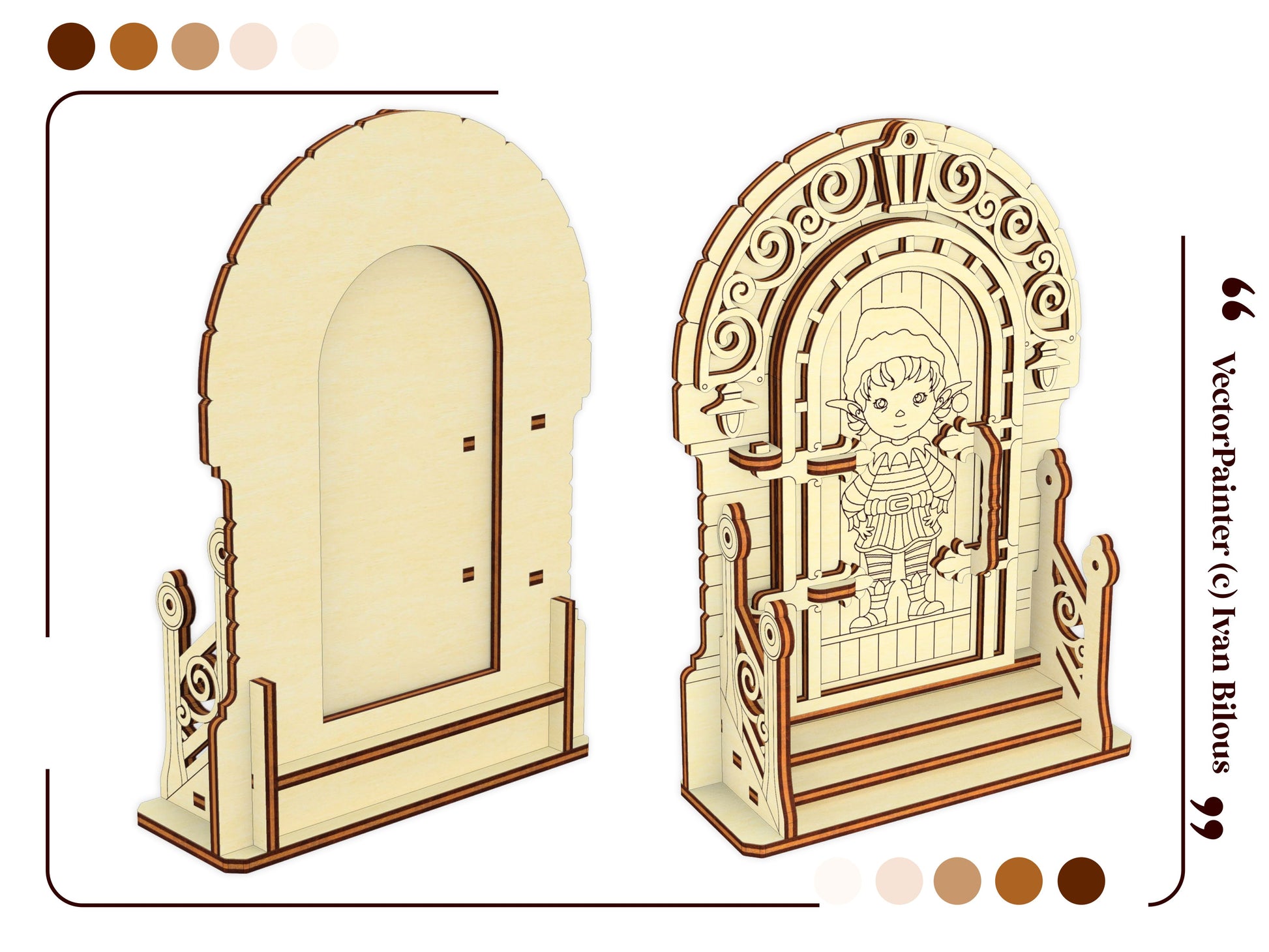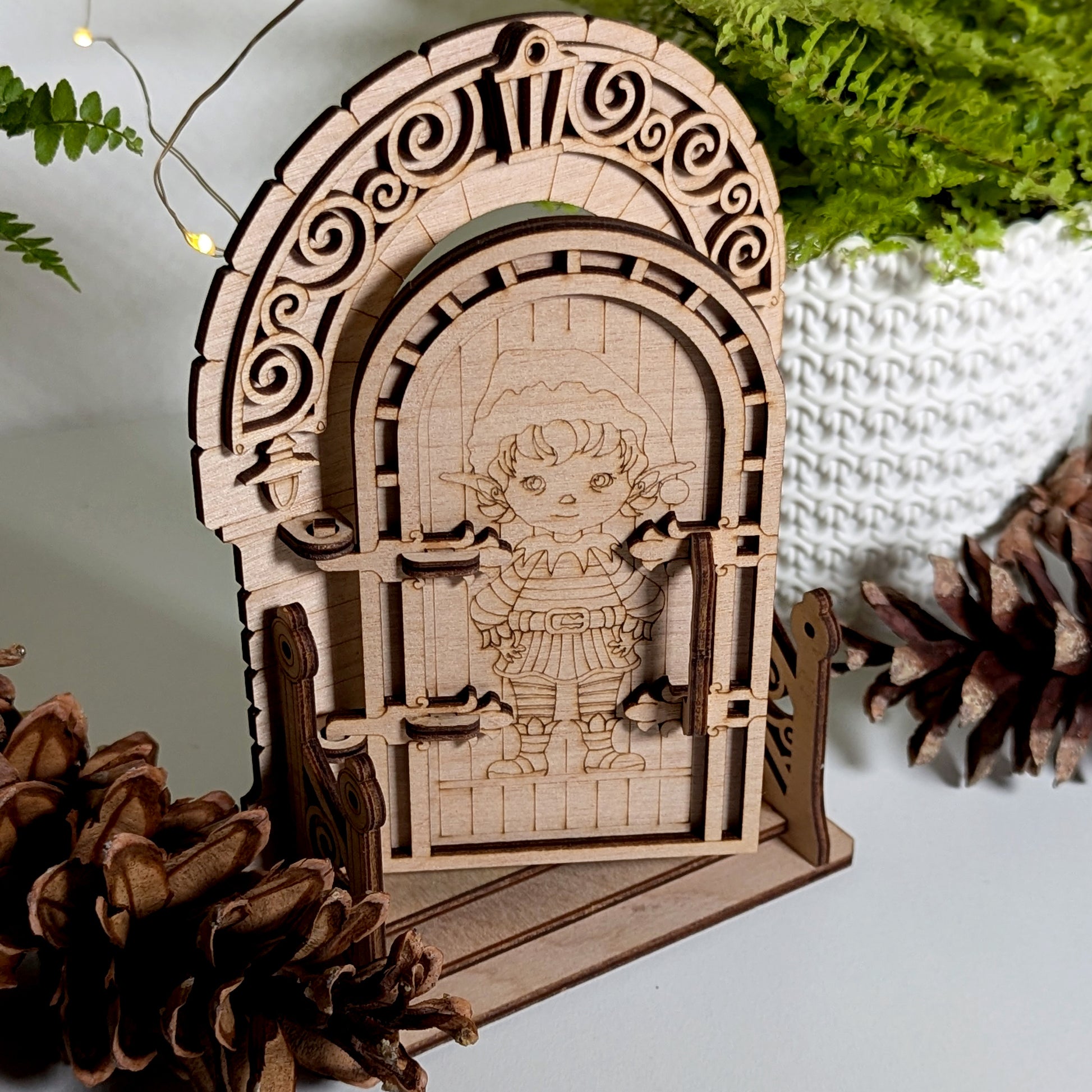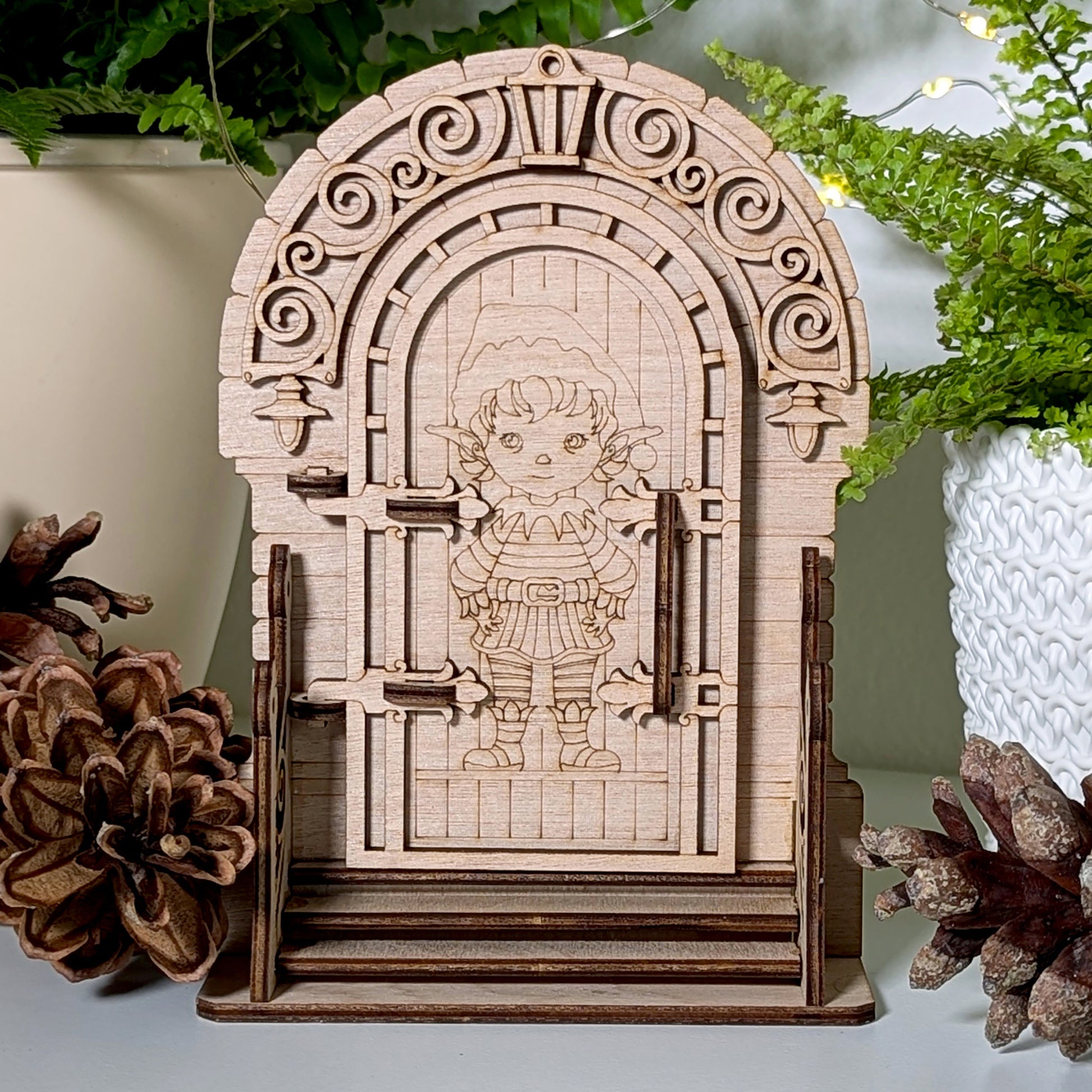 Bring holiday magic to life with this Laser Cut Files for a 3D Christmas Elf Door. This enchanting design features a charming door behind which Santa's elf resides, keeping track of a child's behavior throughout the year. Perfect for adding a whimsical touch to your Christmas décor, this detailed laser-cut file is a delightful way to enhance the festive spirit in any home.