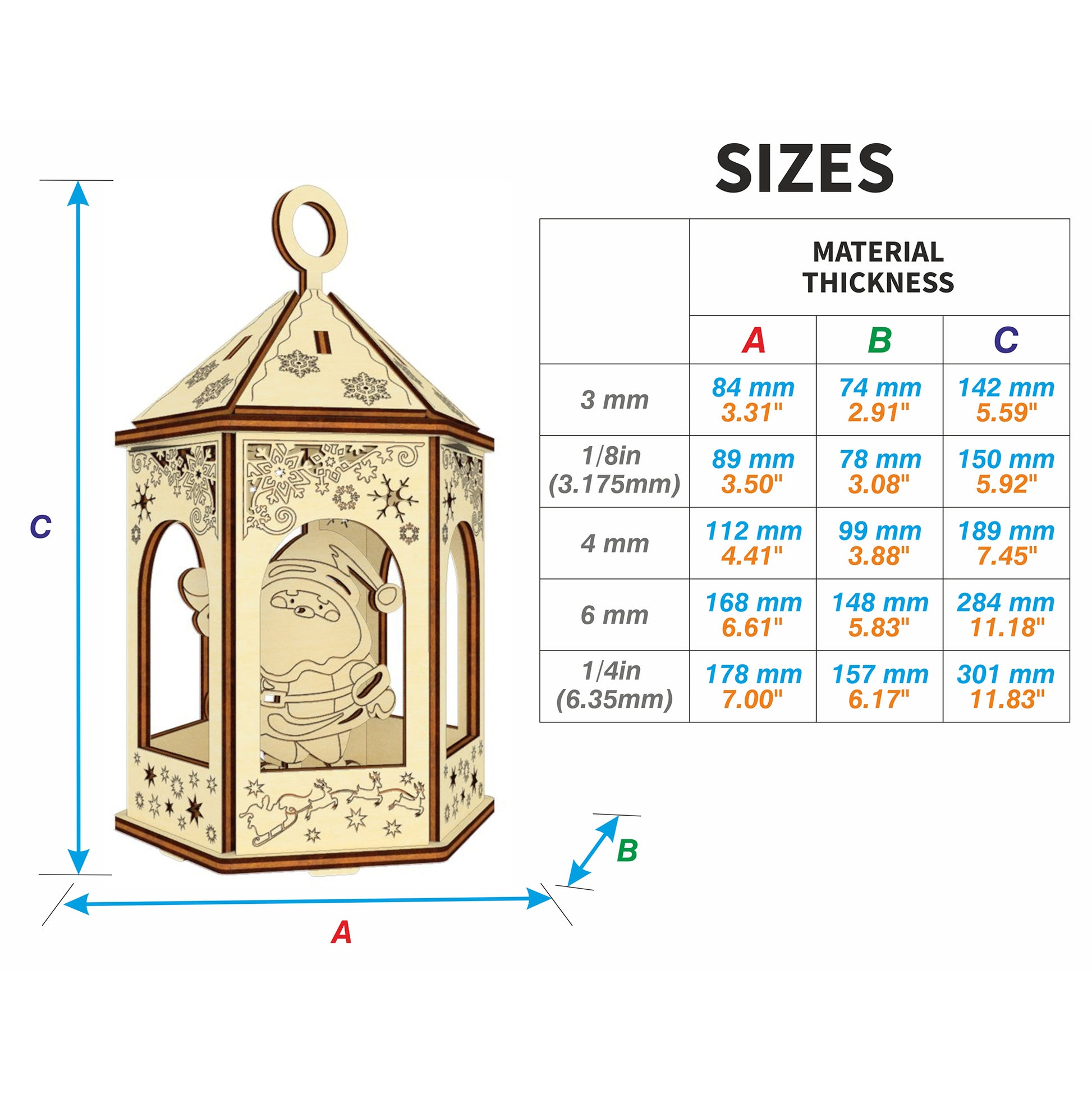 🤏Material thickness (versions of the files): 3mm, 1/8''(3.175mm), 4mm, 6mm, 1/4''(6.35mm)