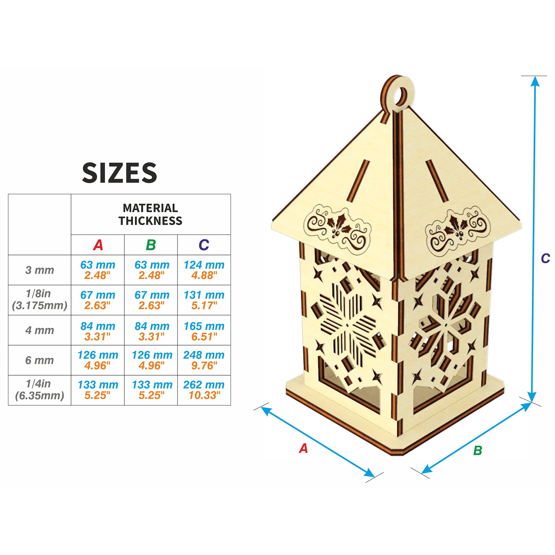 🤏Material thickness (versions of the files): 3mm, 1/8''(3.175mm), 4mm, 6mm, 1/4''(6.35mm)