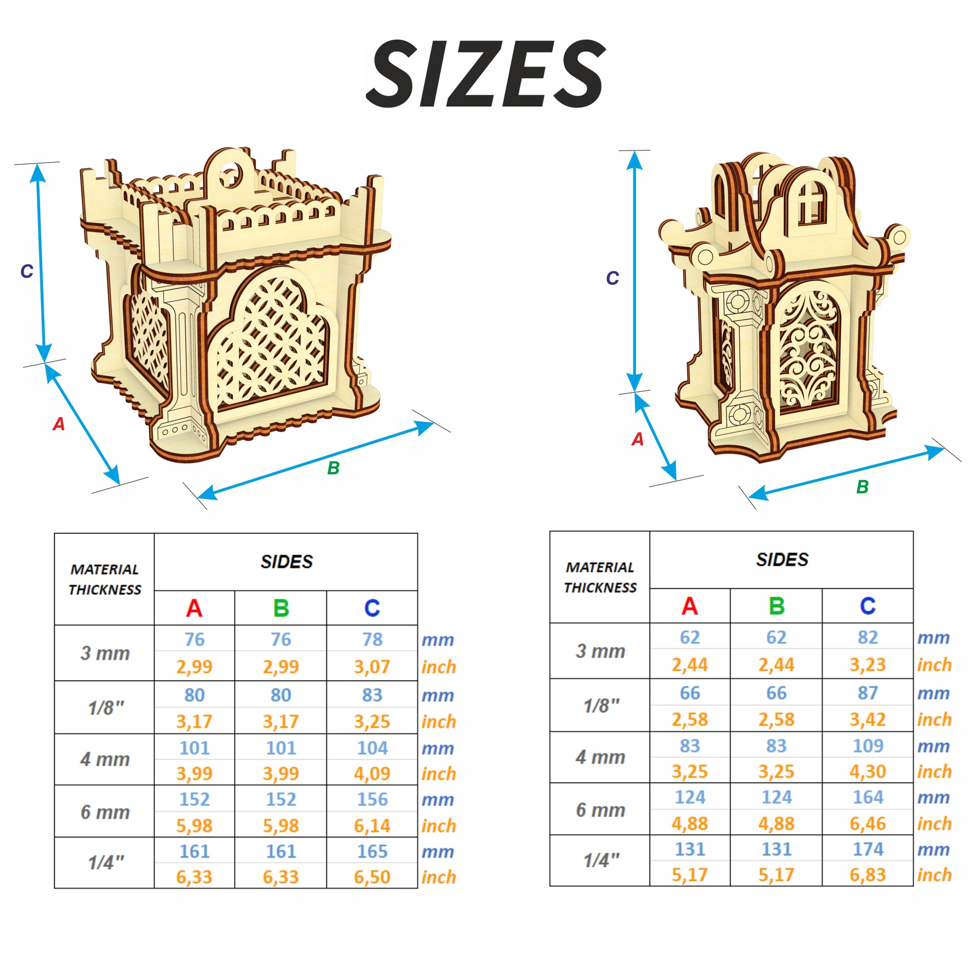 🤏Material thickness (versions of the files): 3mm, 1/8''(3.175mm), 4mm, 6mm, 1/4''(6.35mm)