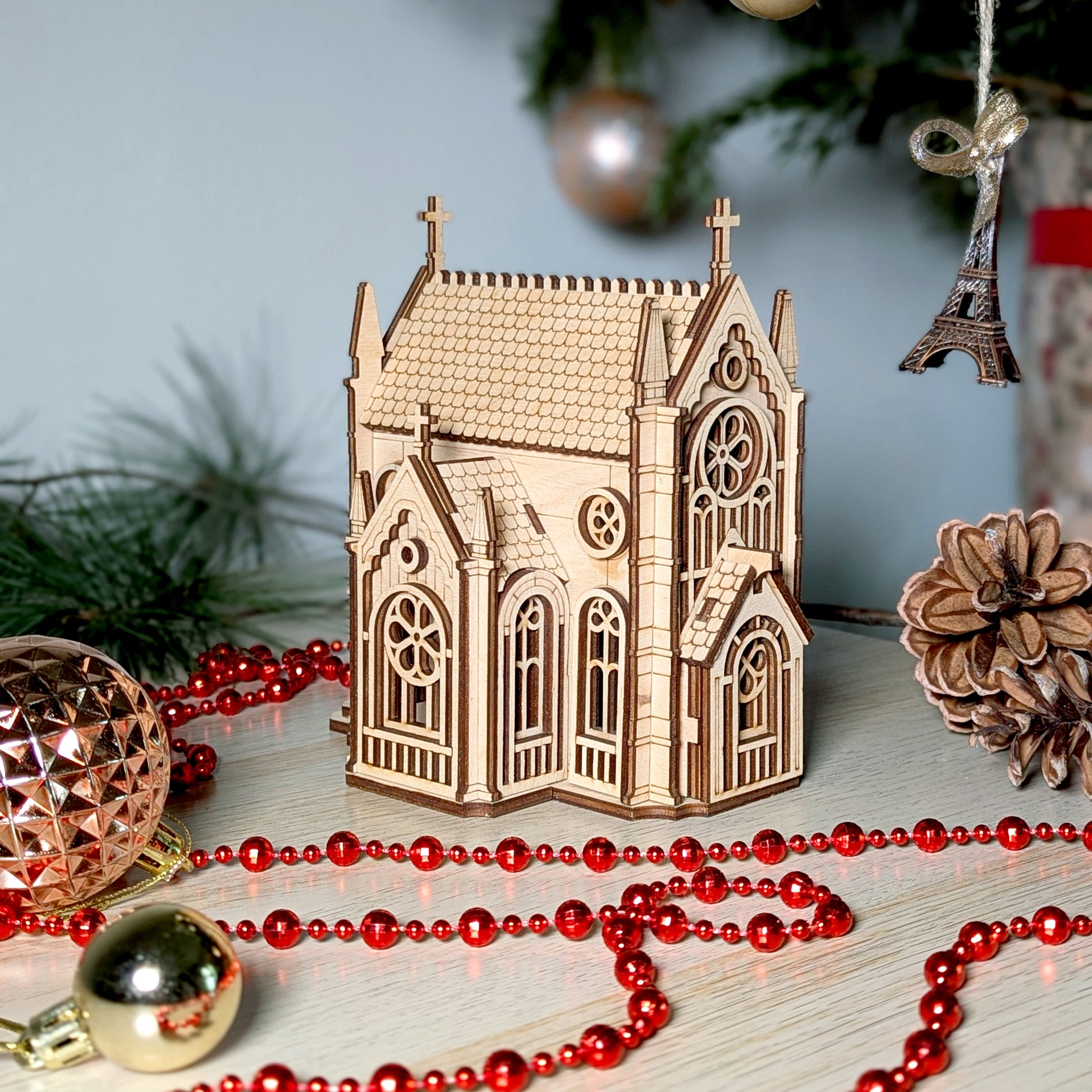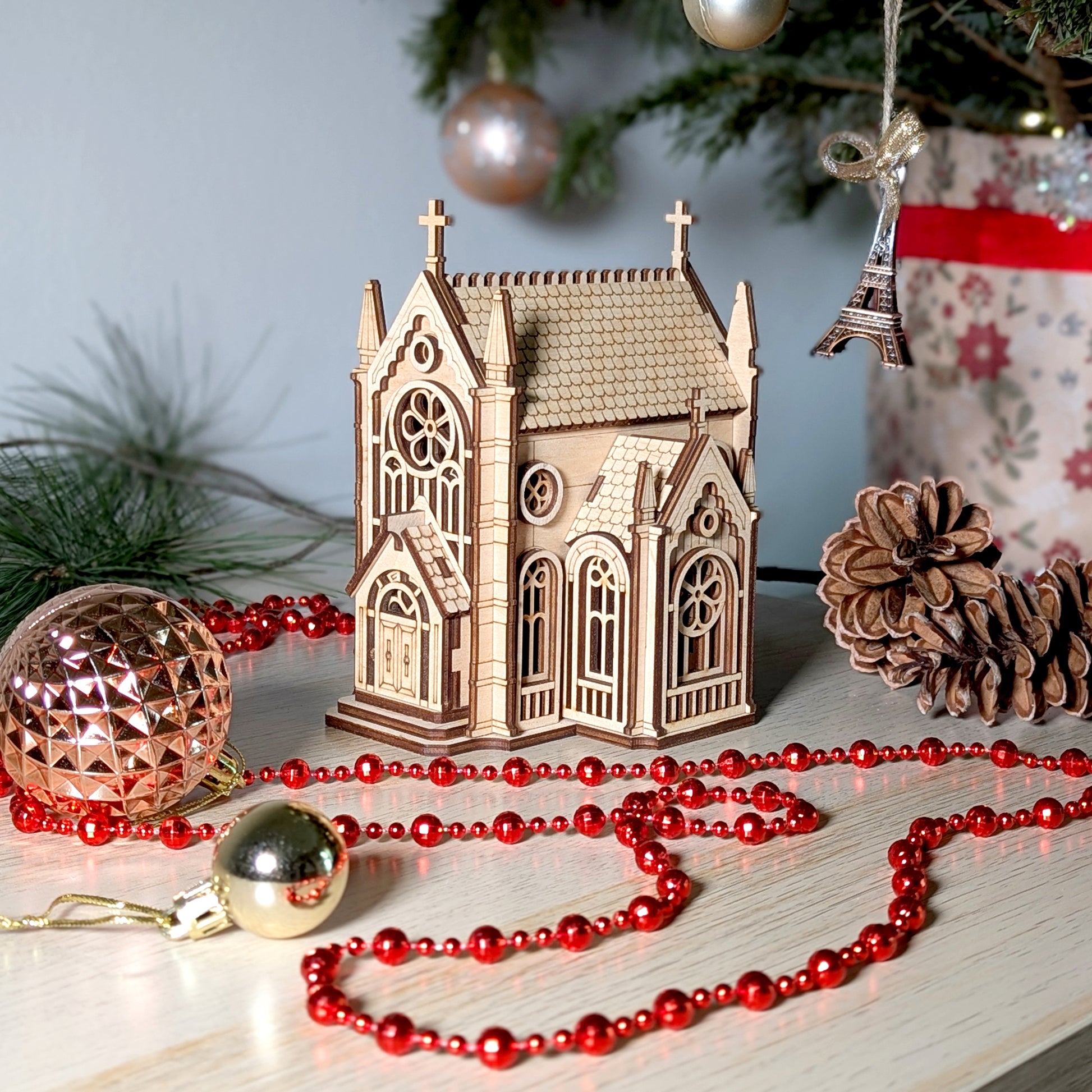 The Laser Cut Church design is a stunning and intricate addition to any decorative collection. This beautifully detailed model captures the elegance of classic church architecture with its towering steeple, arched windows, and finely cut details. Ideal for holiday decor, miniature village displays, or simply as a unique centerpiece, this church model is designed with precision to bring an air of serenity and grace to any setting. Download the laser cut files and create this timeless design for yourself.