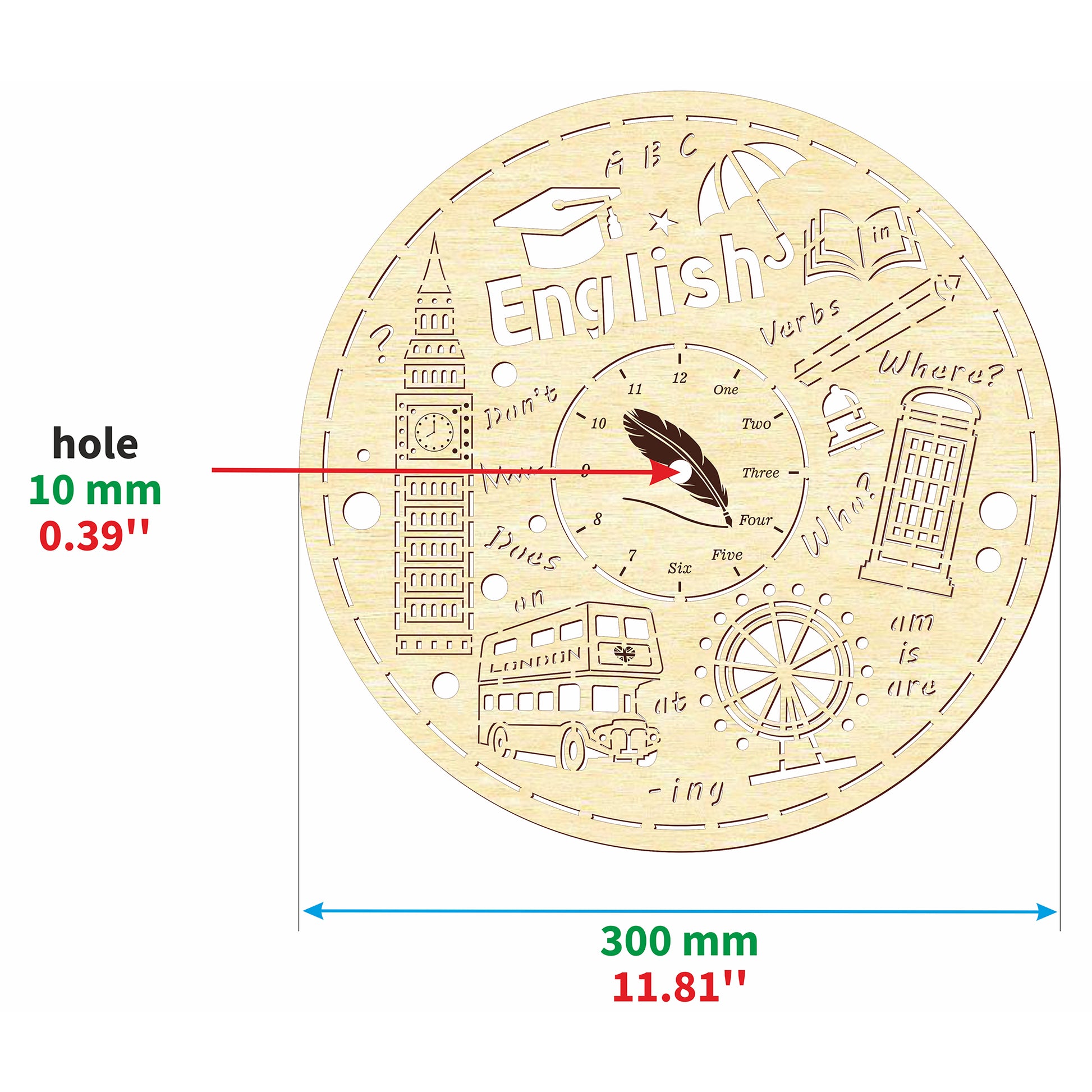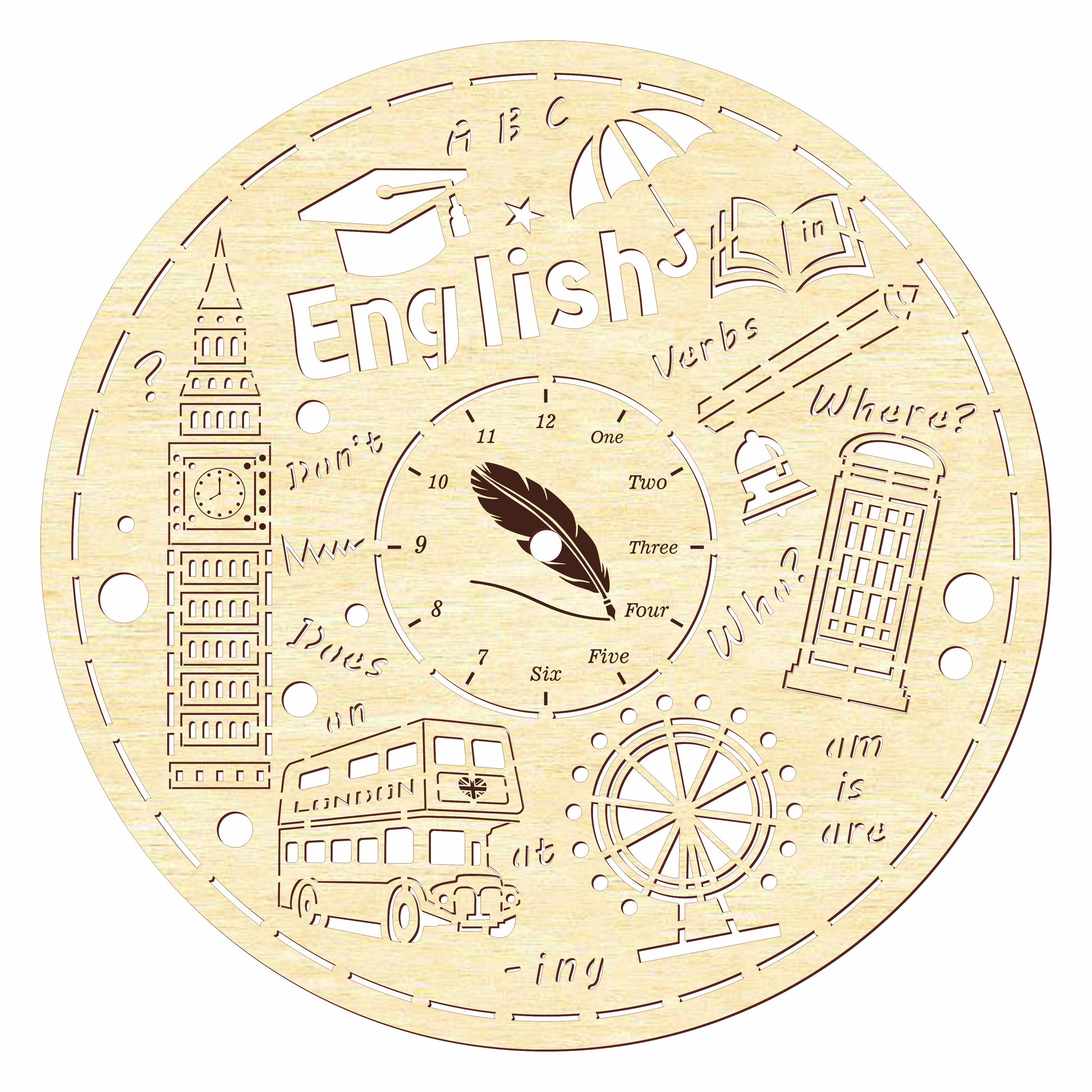 🎨 Laser cut design Clock face "Englis" 🎨