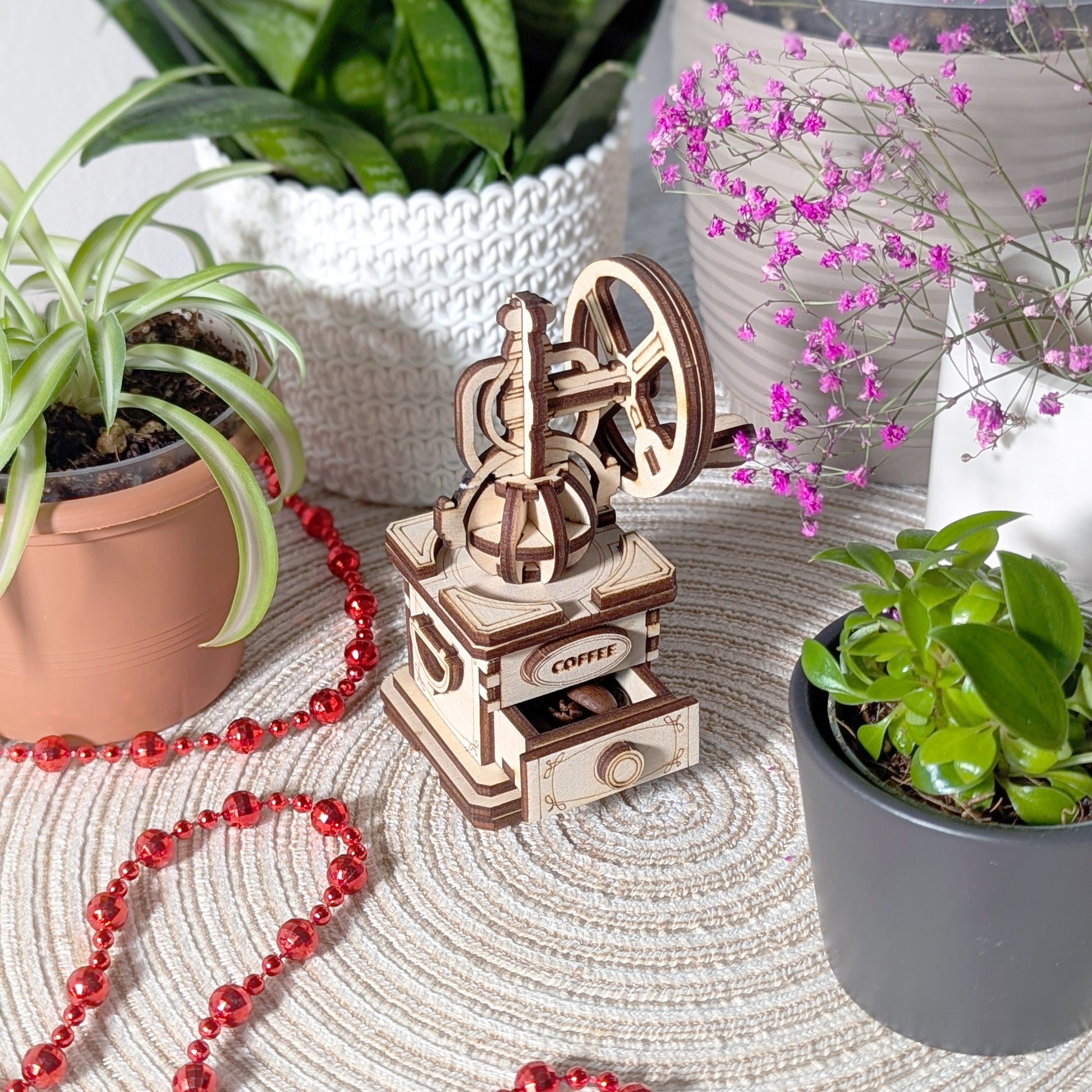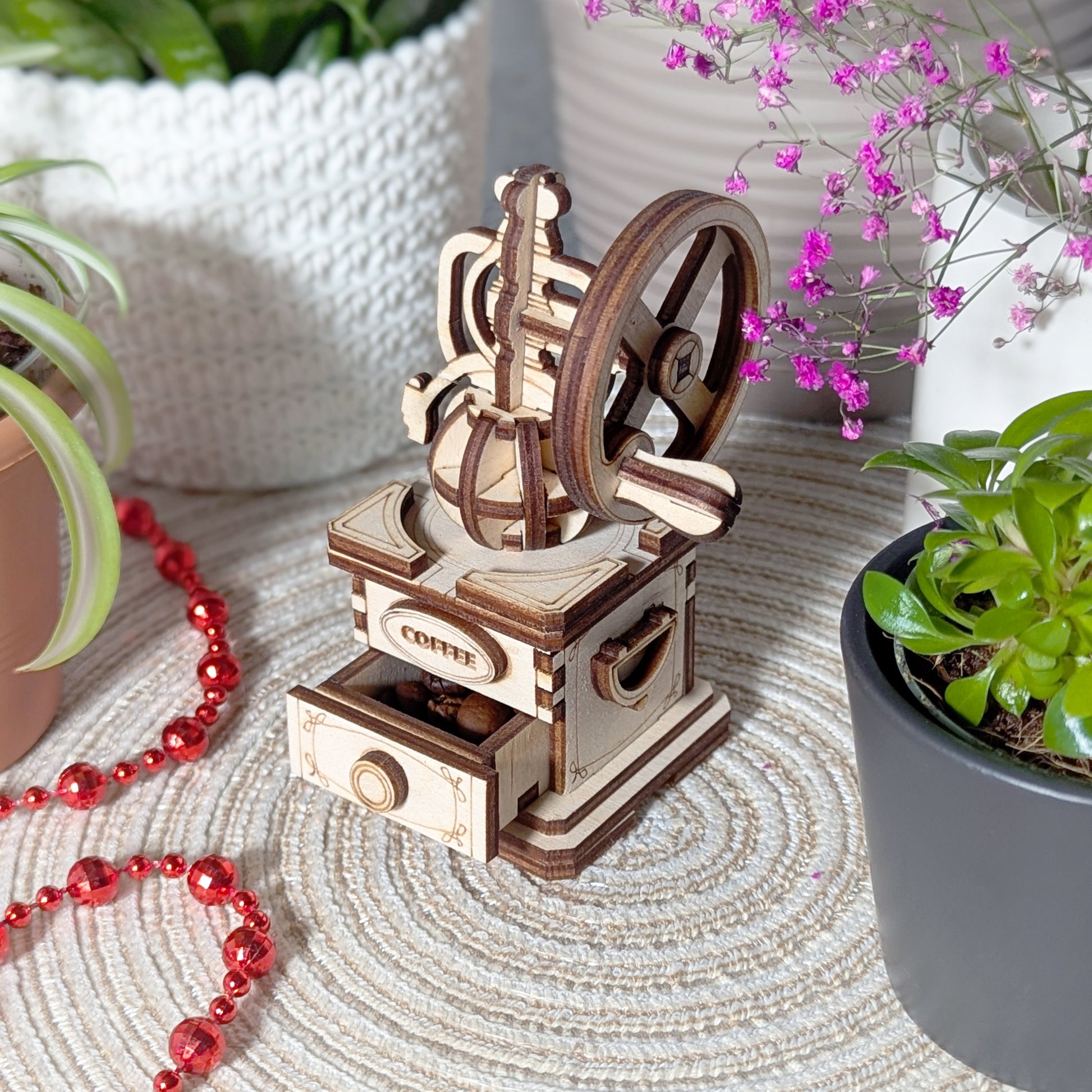 Craft a tiny touch of nostalgia with this Miniature Vintage Coffee Grinder Laser Cut File – an extra small SVG design featuring a pull-out drawer, perfect for creating a charming decorative piece ☕✨