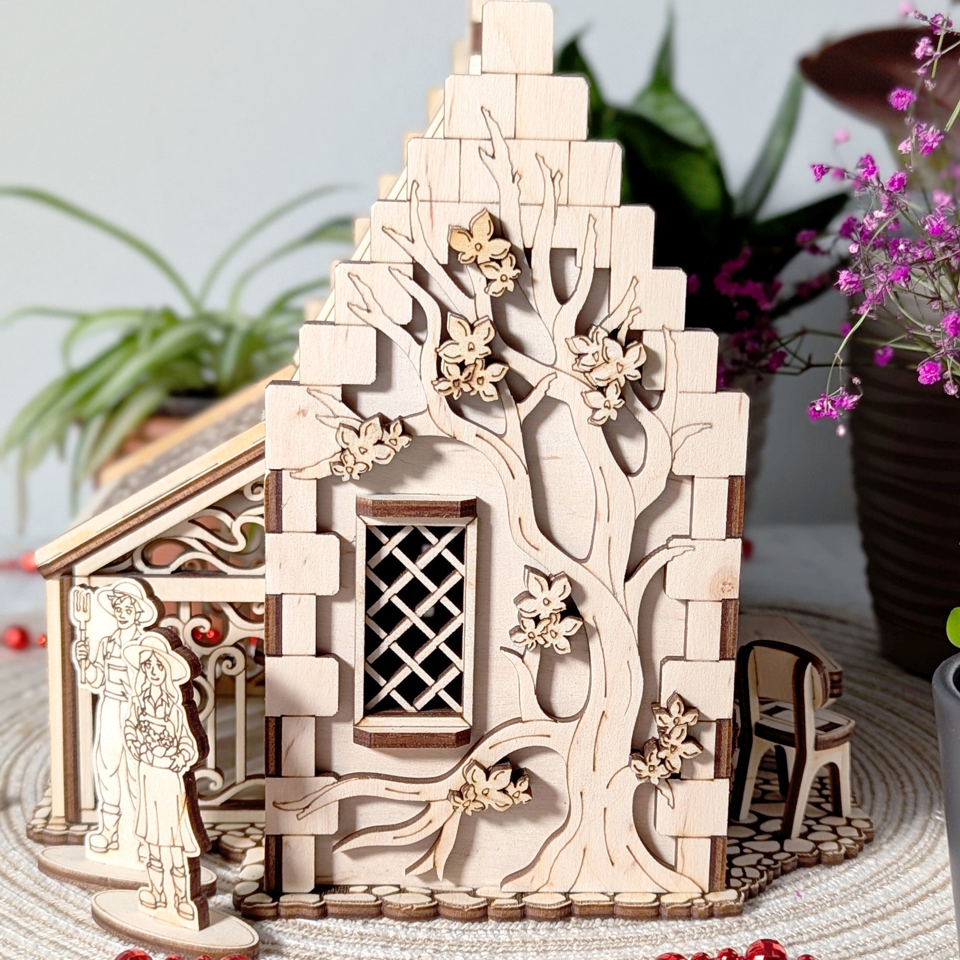 🎨 Laser cut design Garden Cottage with Greenhouse 🎨