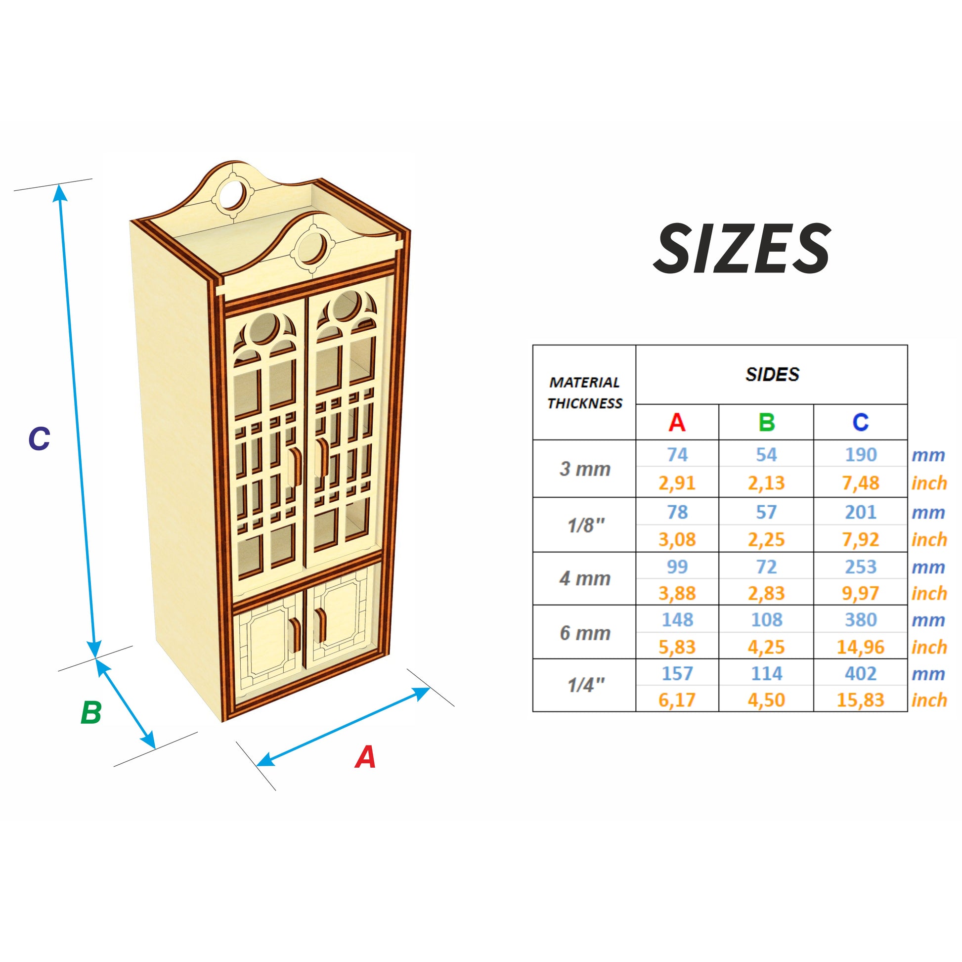 3 mm thickness: 74 x 54 x 190 mm (2,91 x 2,13 x 7,48'')