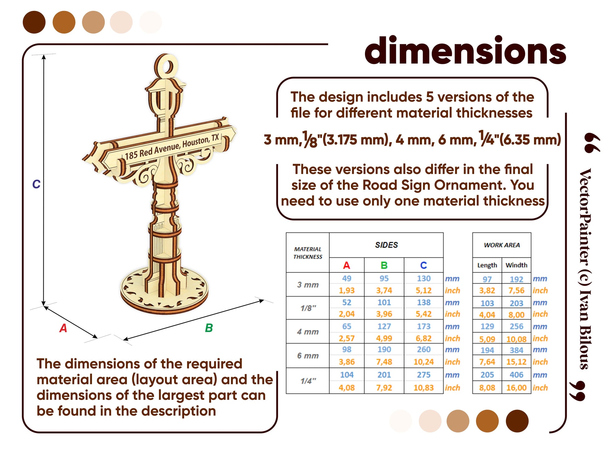 🤏Material thickness (versions of the files): 3mm, 1/8''(3.175mm), 4mm, 6mm, 1/4''(6.35mm)