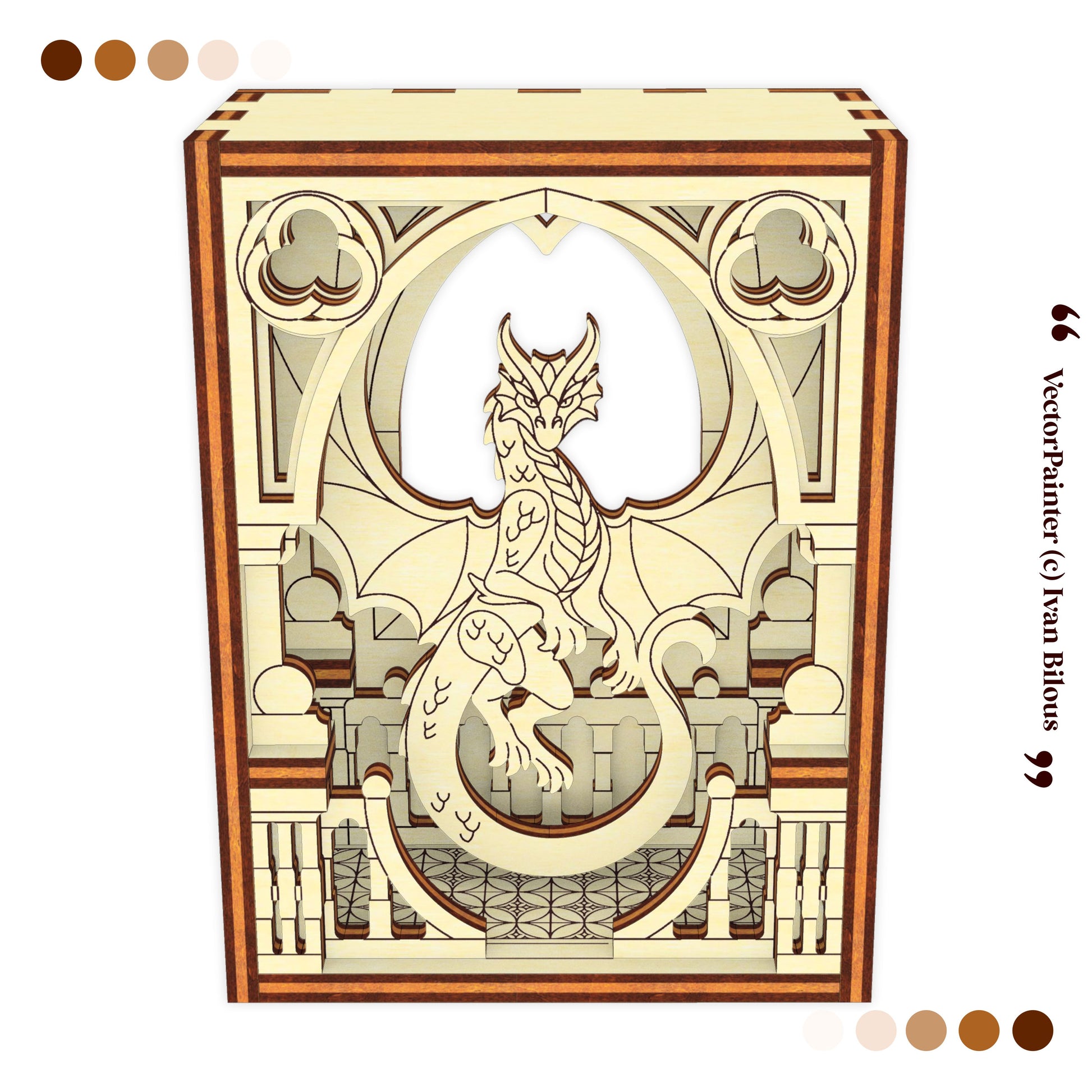 This digital file for laser cutting was created for makers who want to assemble a compact layered dragon scene, providing a detailed laser cut file and laser cutting plan suitable for plywood or similar materials, with clear structure and decorative depth.
