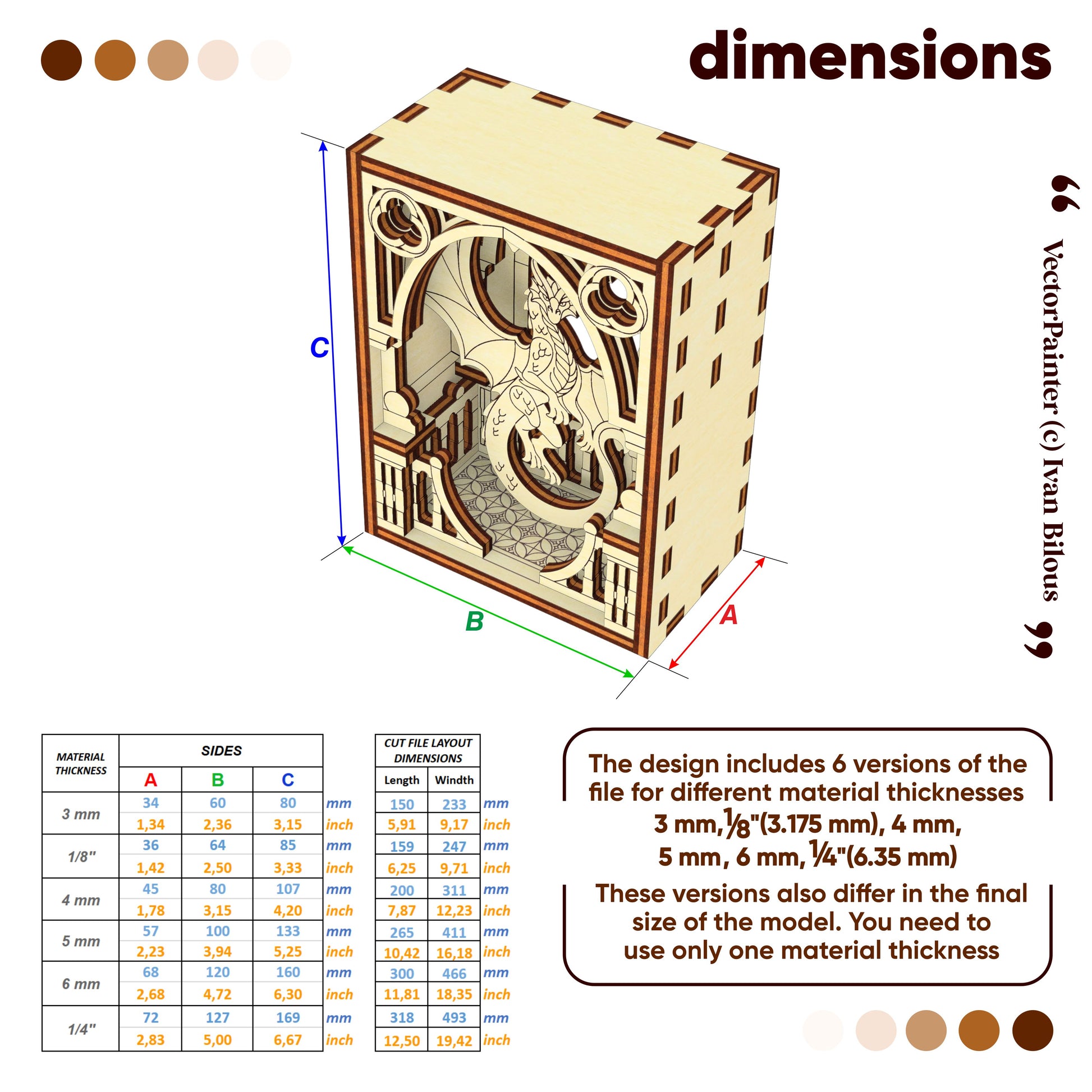 🤏Material thickness (versions of the files): 3 mm, 1/8'' (3.175 mm), 4 mm, 5 mm, 6 mm, 1/4'' (6.35 mm)