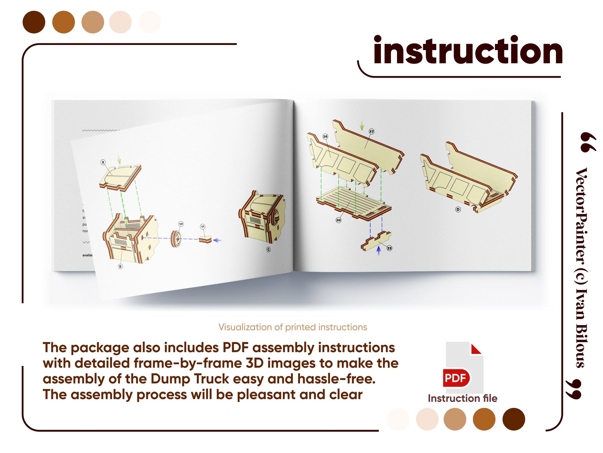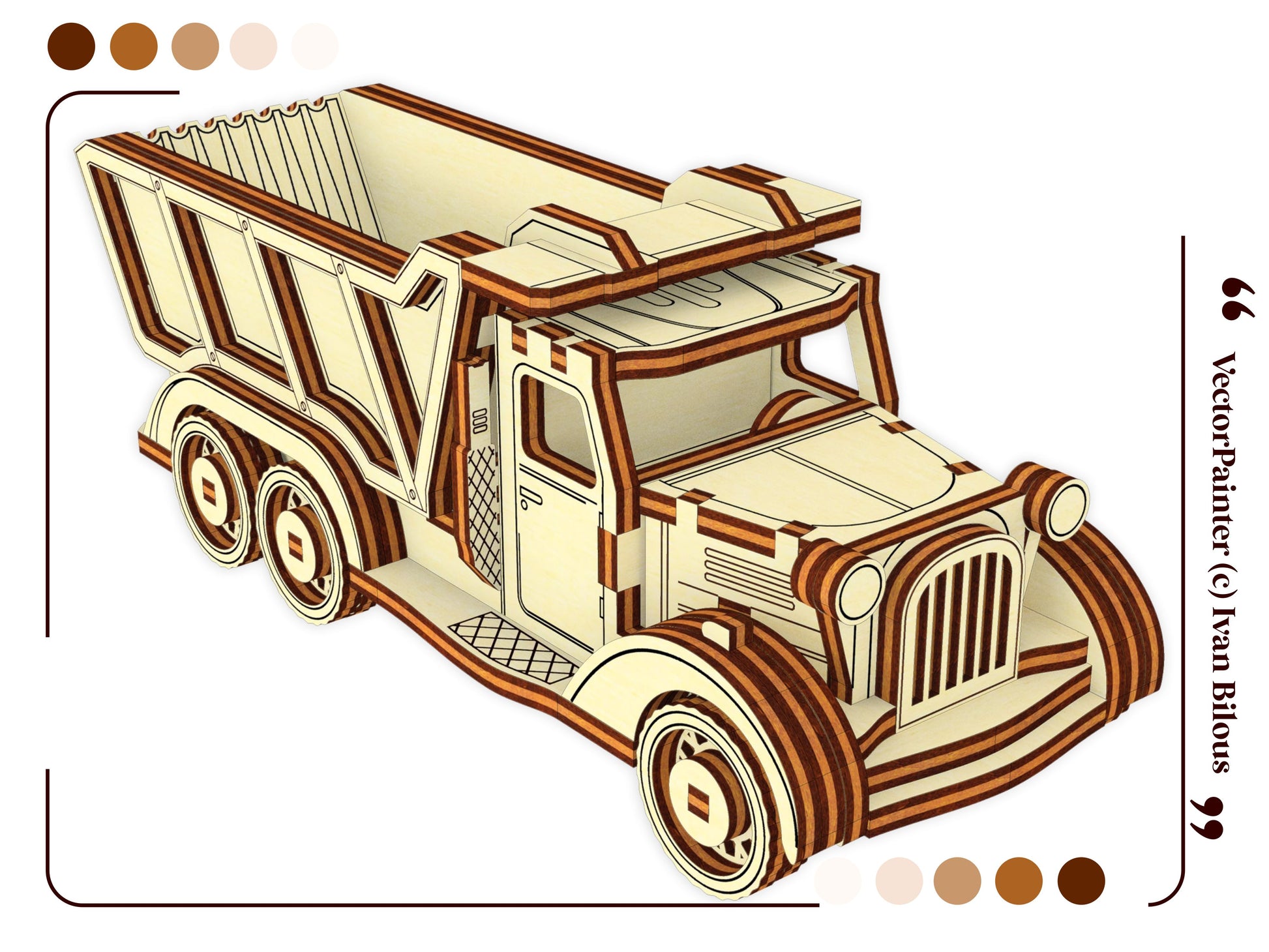 This intricately designed truck features a detailed cab, articulated dump bed, and robust wheels, capturing the realistic look and feel of a heavy-duty vehicle. The design includes a tilting cargo bed, allowing for interactive play as the bed can be raised and lowered and rotating wheels. Ideal for both display and imaginative play, this dump truck can be customized with your choice of finishes, making it a versatile and eye-catching piece. Download the design files to build your own miniature dump truck