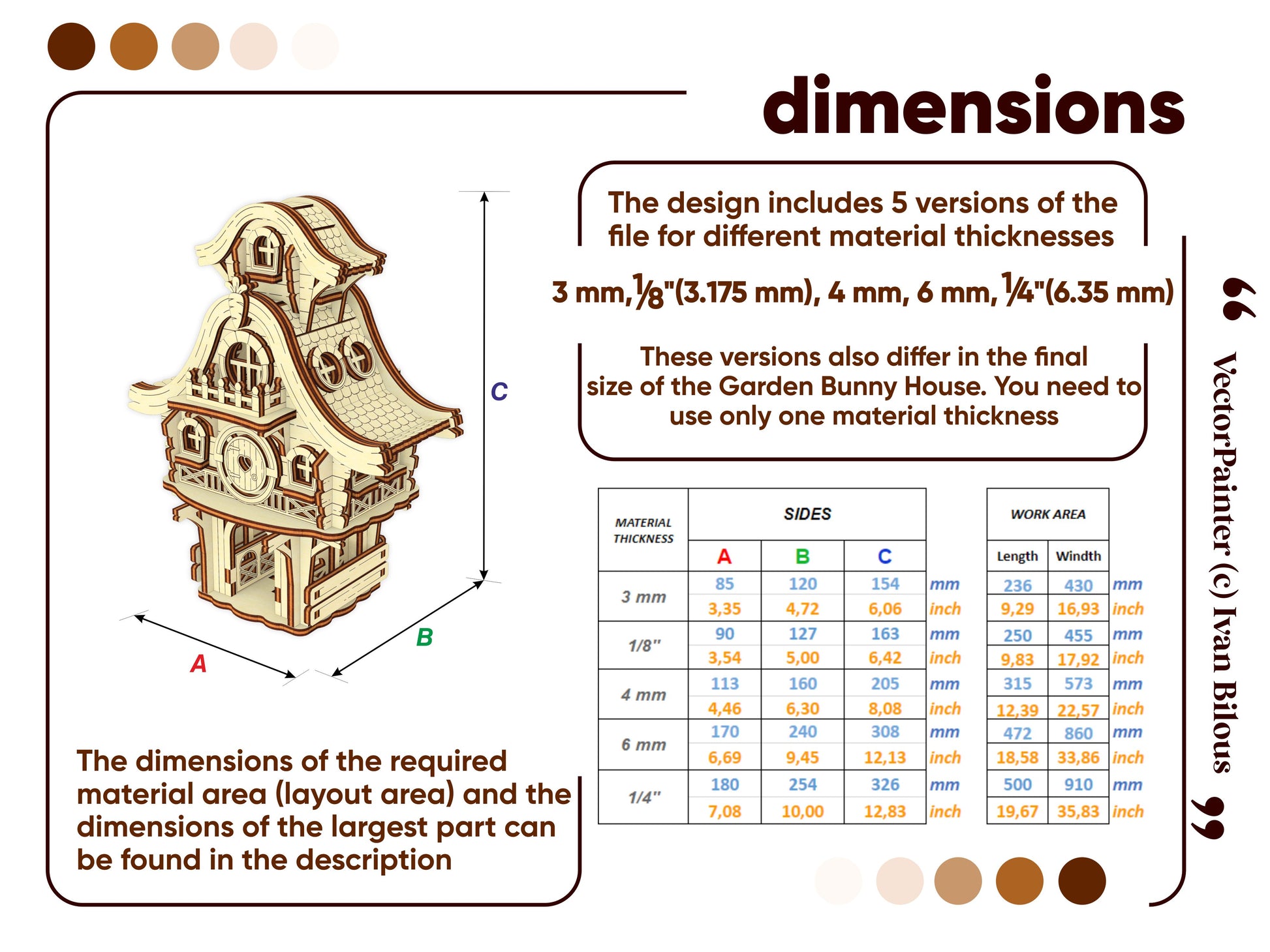 🤏Material thickness (versions of the files): 3mm, 1/8''(3.175mm), 4mm, 6mm, 1/4''(6.35mm)