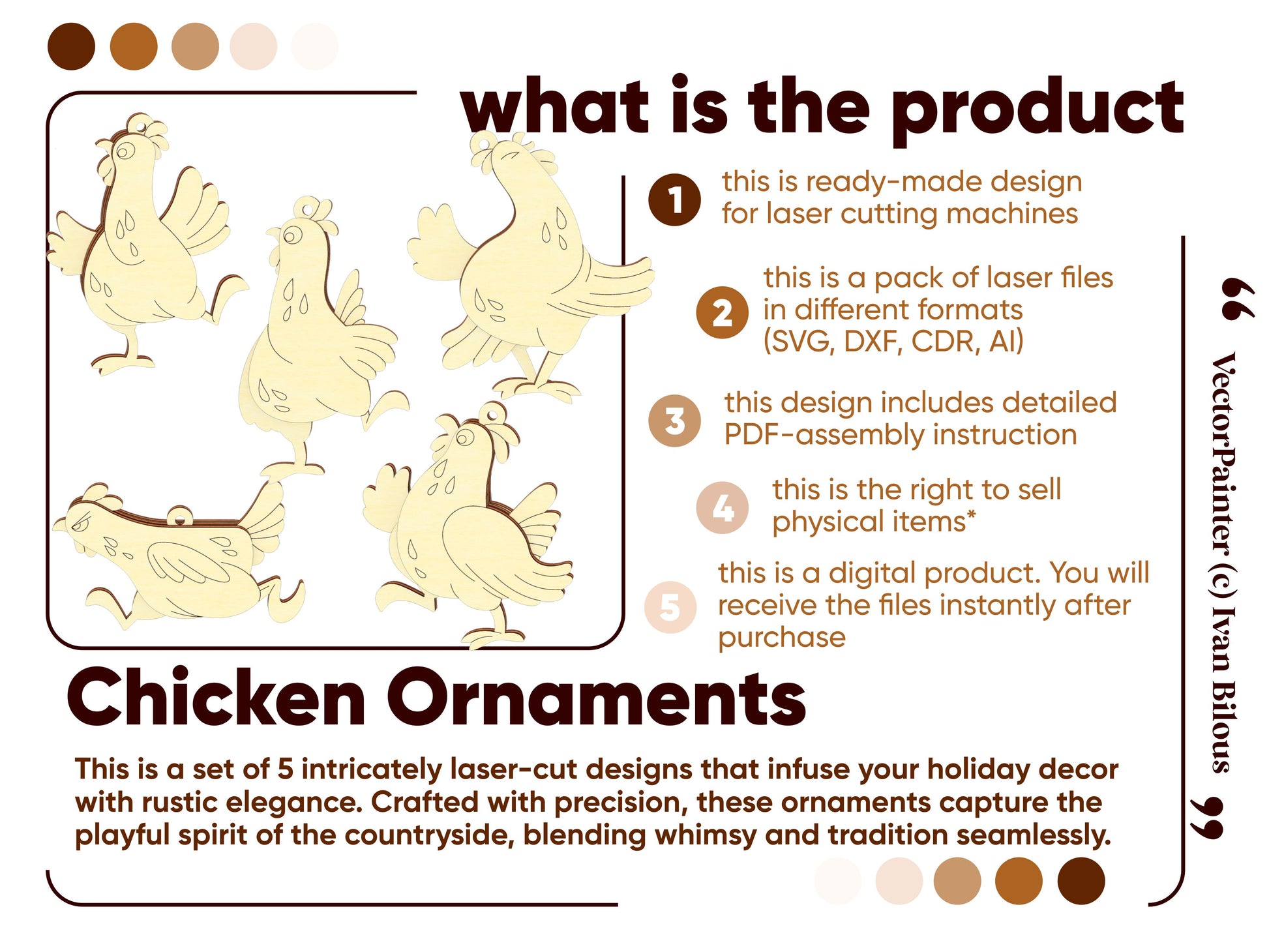 🎨 Laser cut design "Chicken Ornaments" 🎨