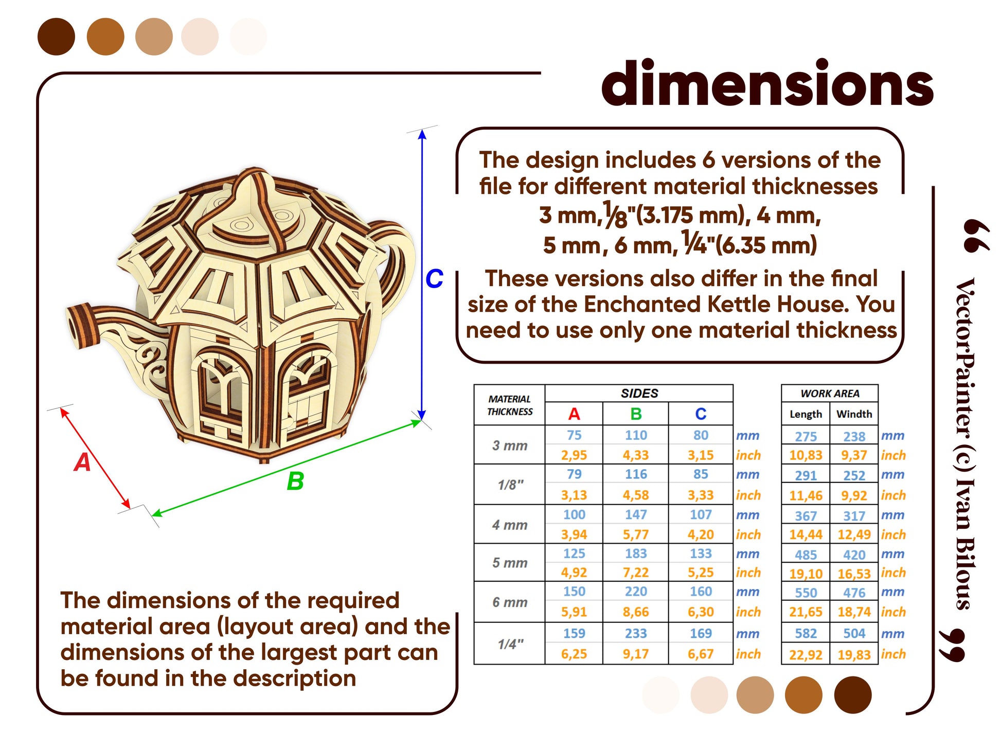 🤏Material thickness (versions of the files): 3 mm, 1/8'' (3.175 mm), 4 mm, 5 mm, 6 mm, 1/4'' (6.35 mm)