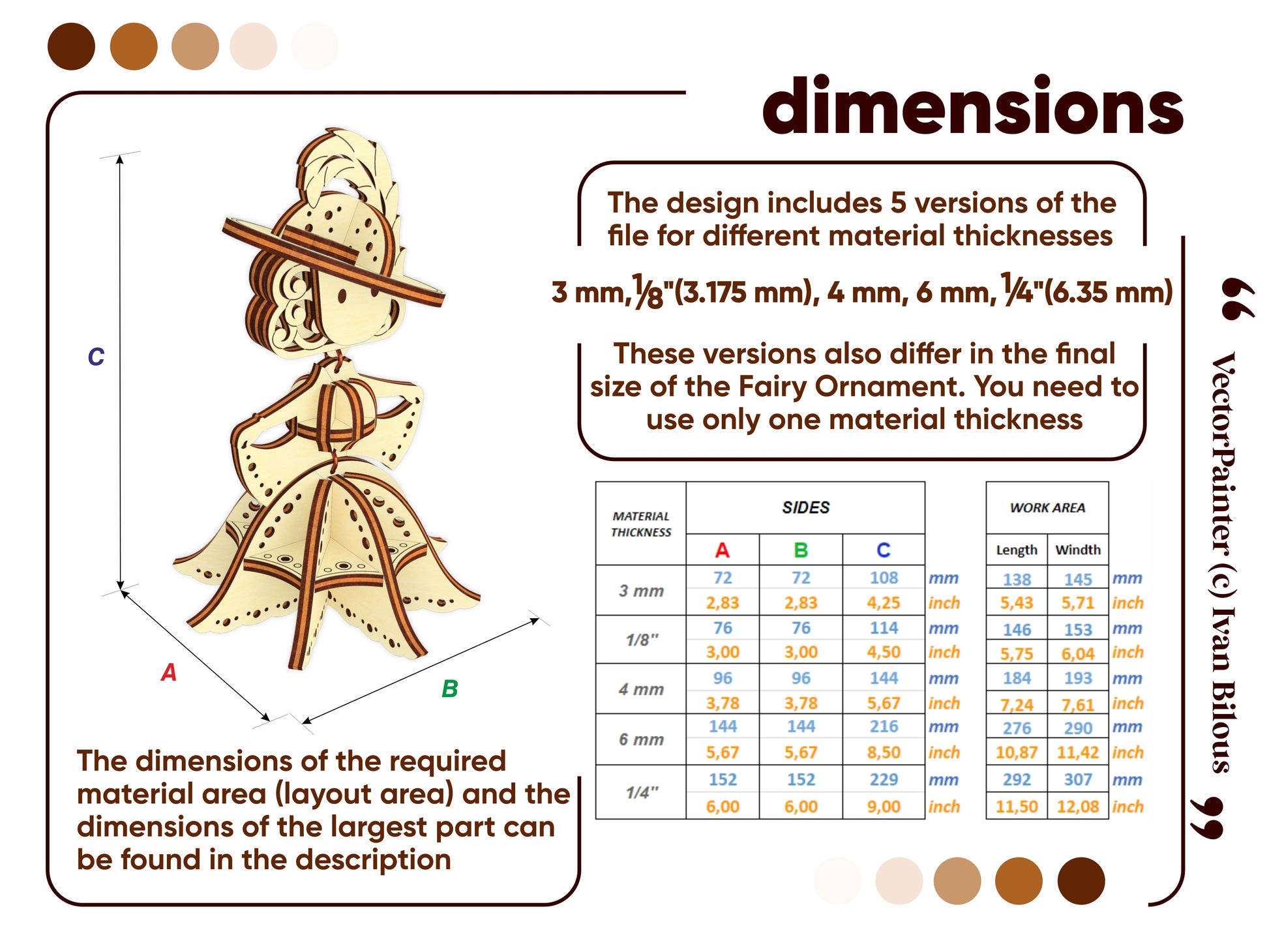 🤏Material thickness (versions of the files): 3mm, 1/8''(3.175mm), 4mm, 6mm, 1/4''(6.35mm)