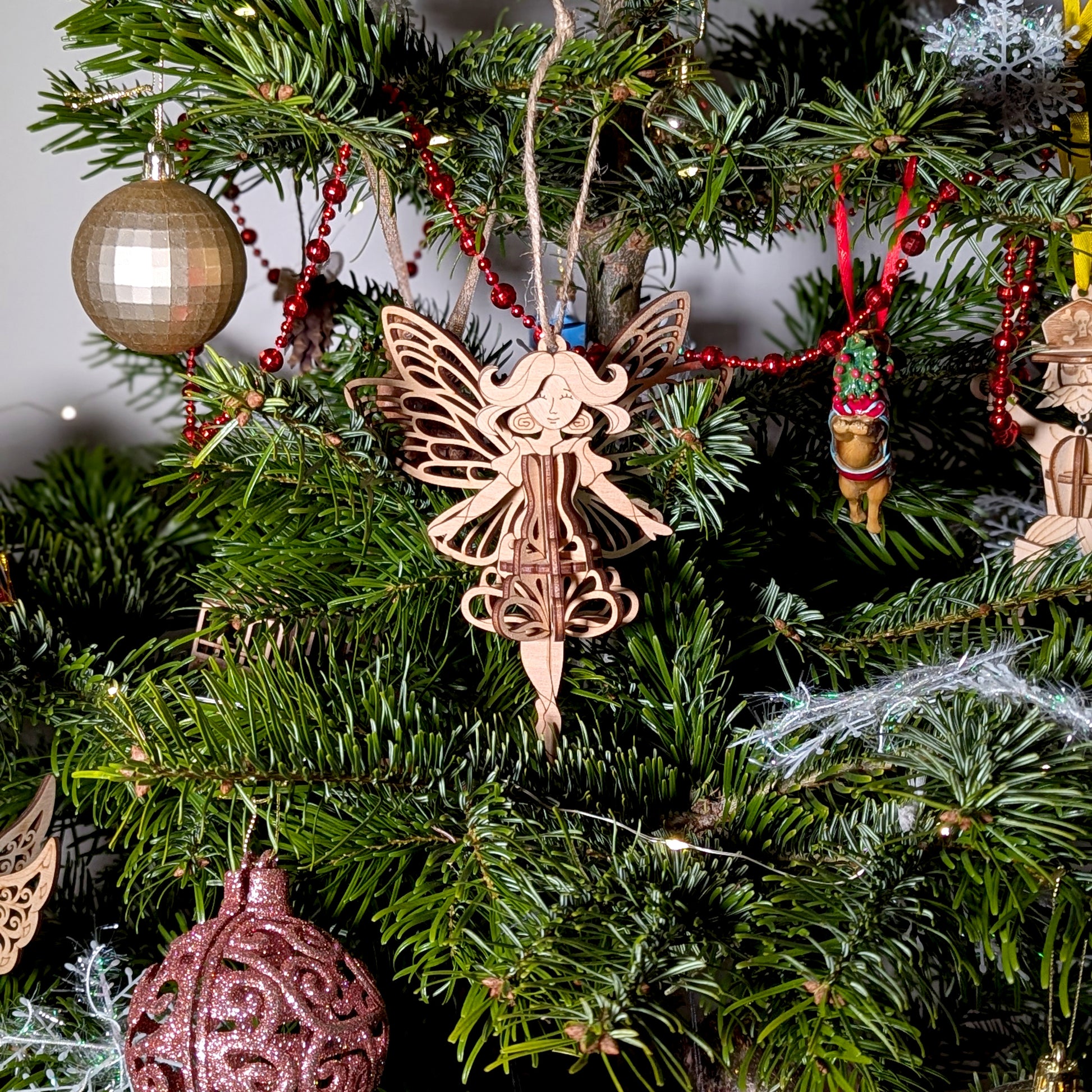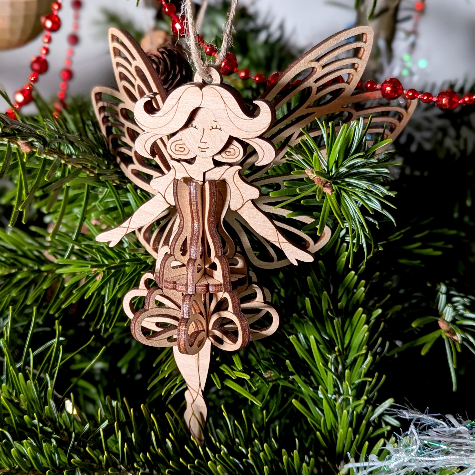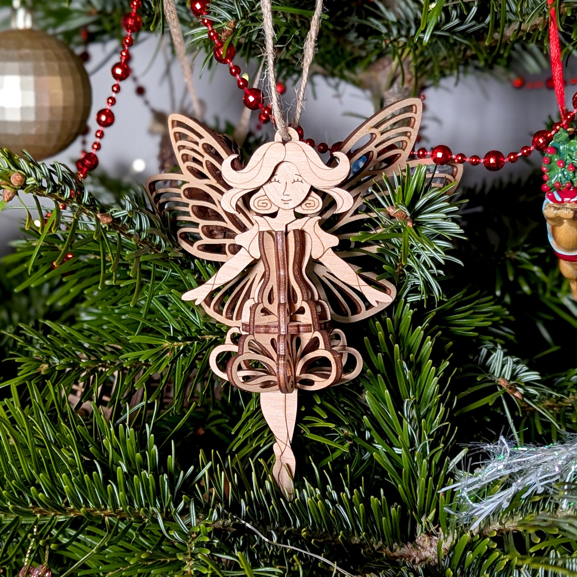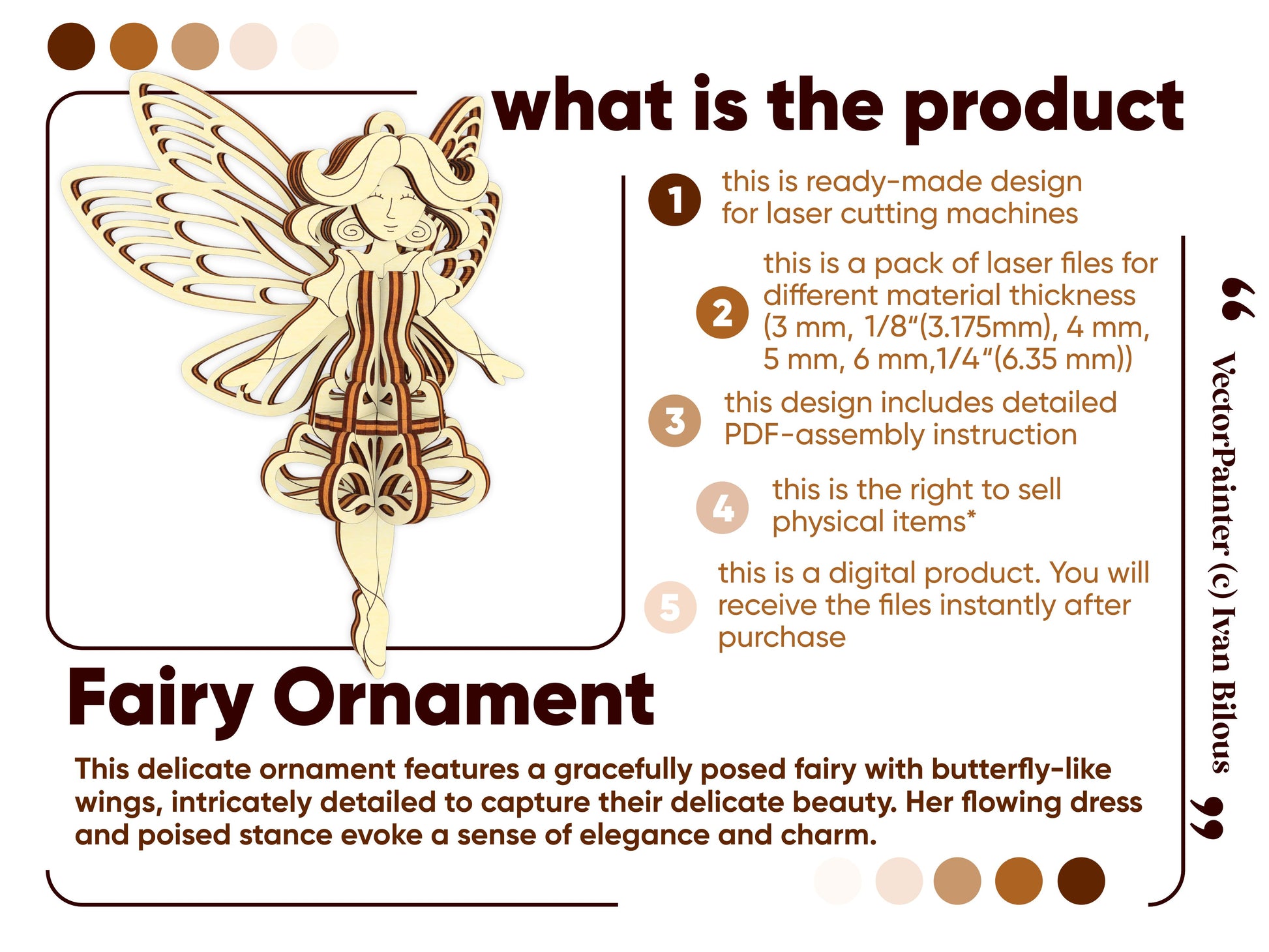 Bring a whimsical touch to your holiday decor with our Fairy Ornament Laser Cut File. This enchanting design showcases a delicately posed fairy with butterfly-like wings and a flowing dress, capturing elegance and charm.