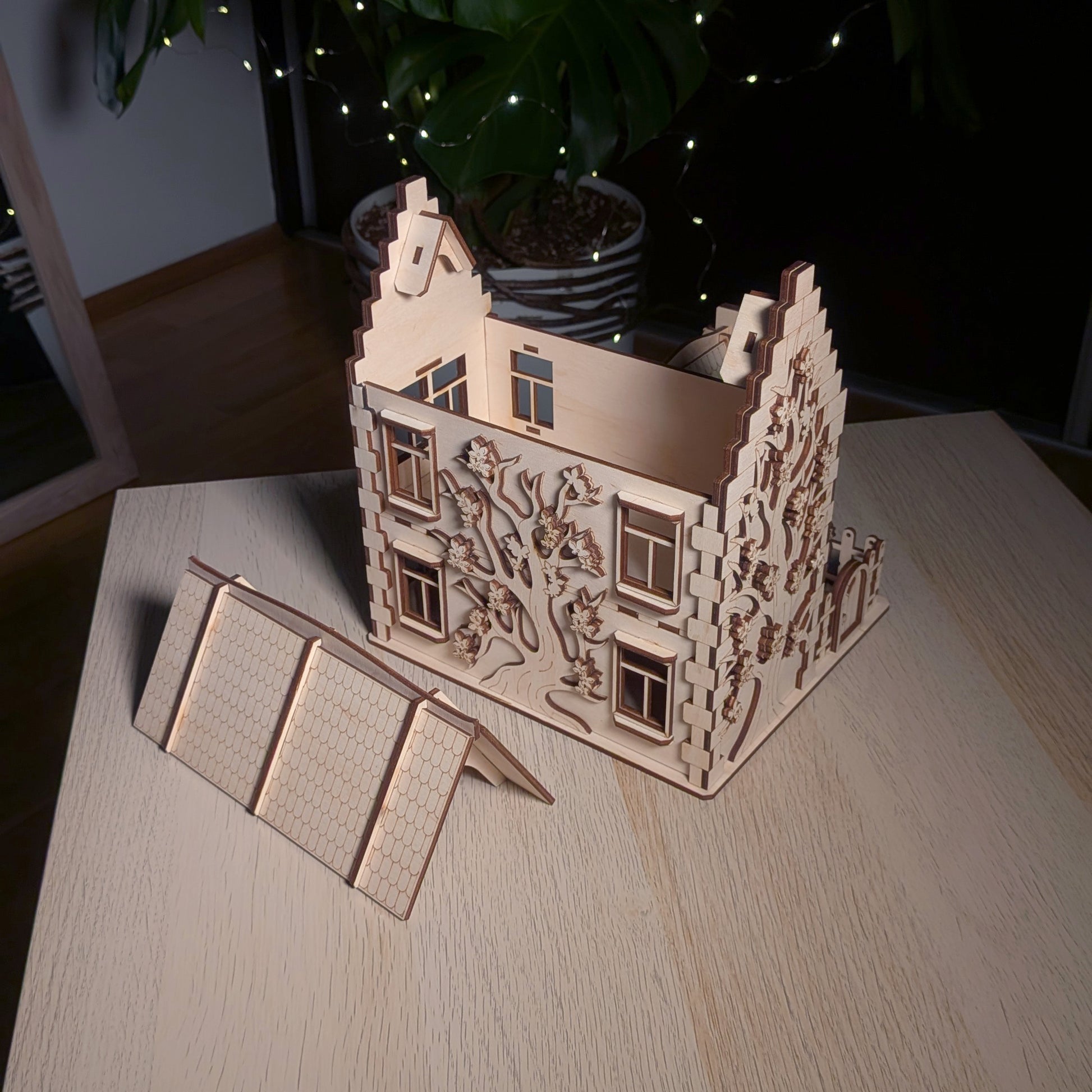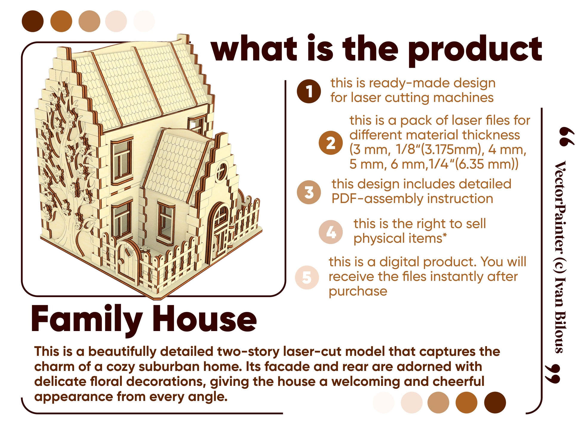 Create a warm and inviting scene with this Family House Laser Cut File, a detailed SVG template perfect for crafting a miniature wooden home using your favorite laser cutting machine. Designed for easy cutting and assembly from plywood this project makes a charming dollhouse, display piece, or personalized gift. With classic architectural features and clean structure, it’s ideal for home decor, storytelling scenes, or collectible displays.