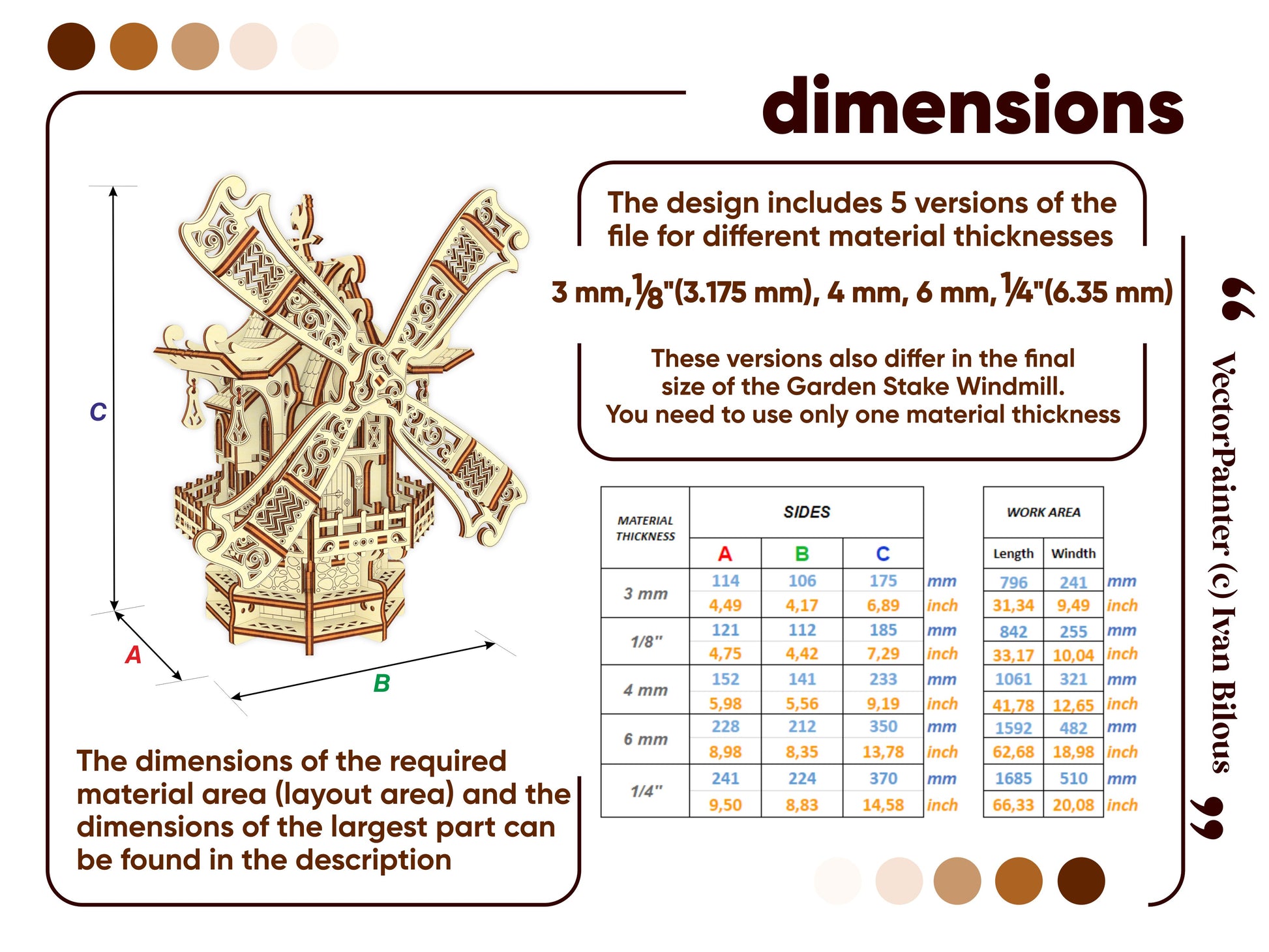 🤏Material thickness (versions of the files): 3 mm, 1/8'' (3.175 mm), 4 mm, 5 mm, 6 mm, 1/4'' (6.35 mm)