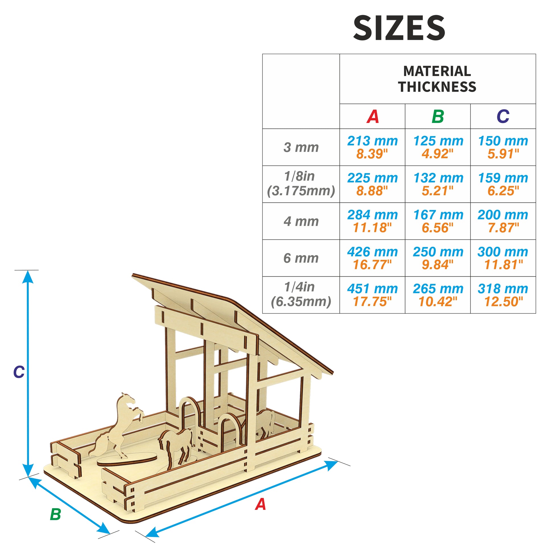 🤏Material thickness (versions of the files): 3mm, 1/8''(3.175mm), 4mm, 6mm, 1/4''(6.35mm)