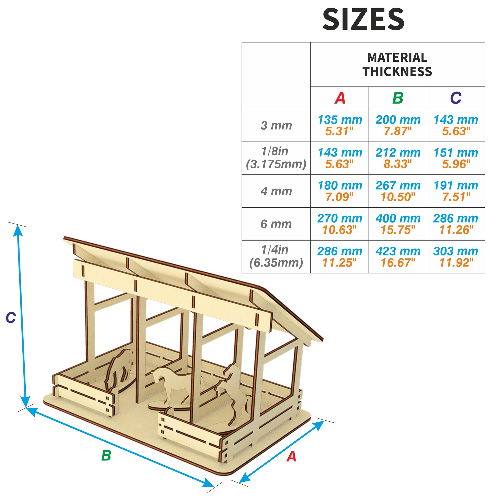 🤏Material thickness (versions of the files): 3mm, 1/8''(3.175mm), 4mm, 6mm, 1/4''(6.35mm)