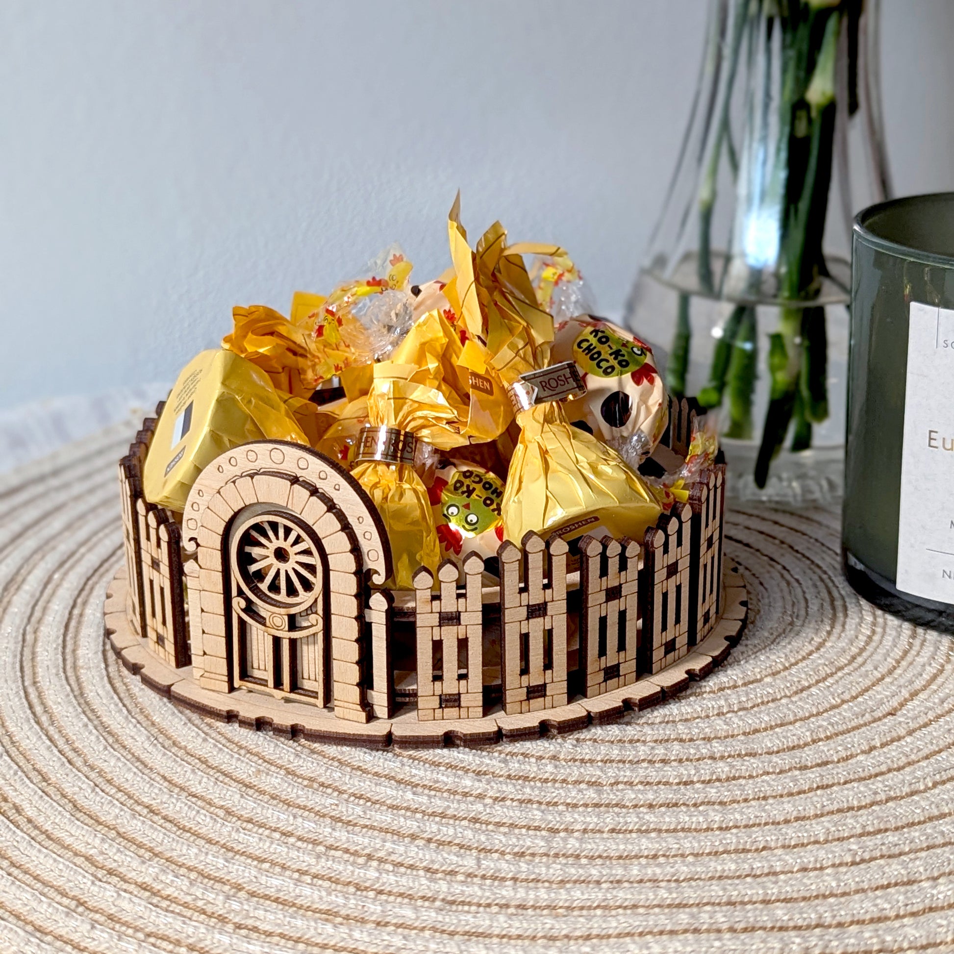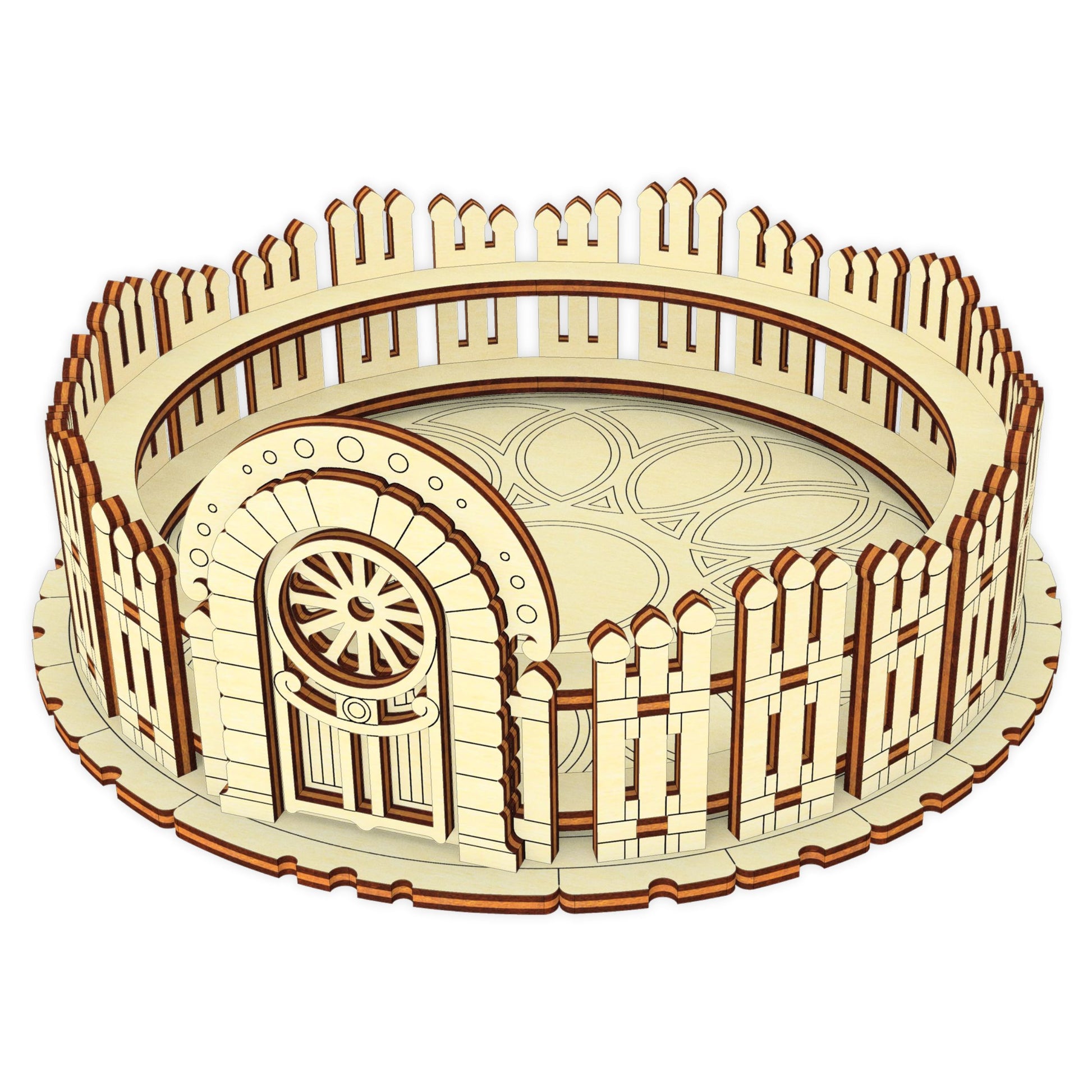 The Flower Pot Fence is a charming and functional addition your flowers. This laser-cut design creates a delightful miniature fence that perfectly cradles small flower pots, adding a touch of rustic elegance and organization to your plant display.