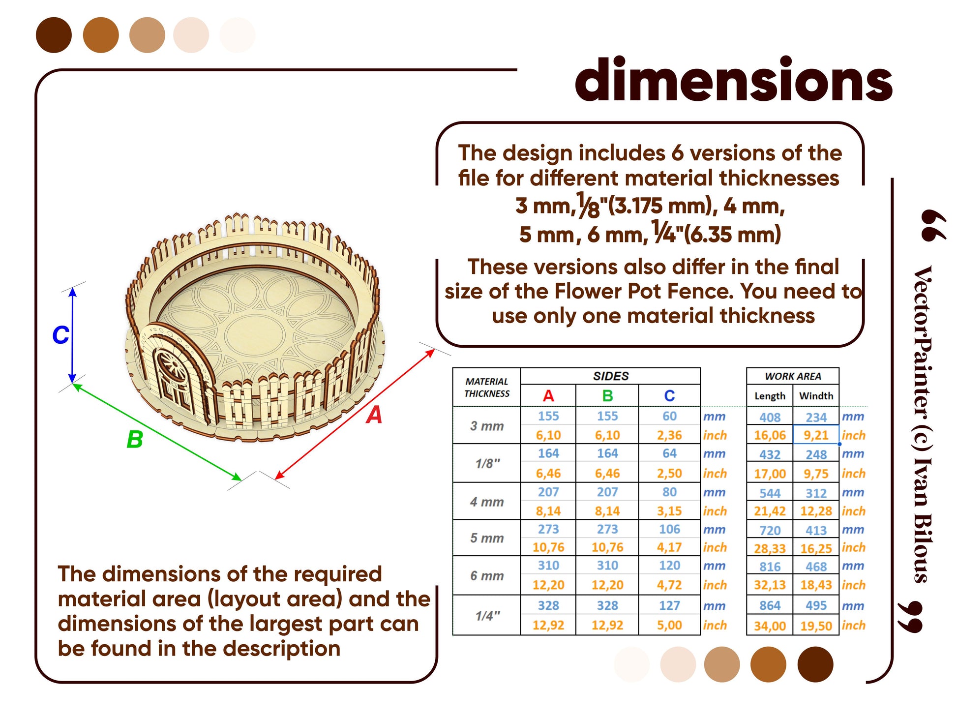 🤏Material thickness (versions of the files): 3 mm, 1/8'' (3.175 mm), 4 mm, 5 mm, 6 mm, 1/4'' (6.35 mm)