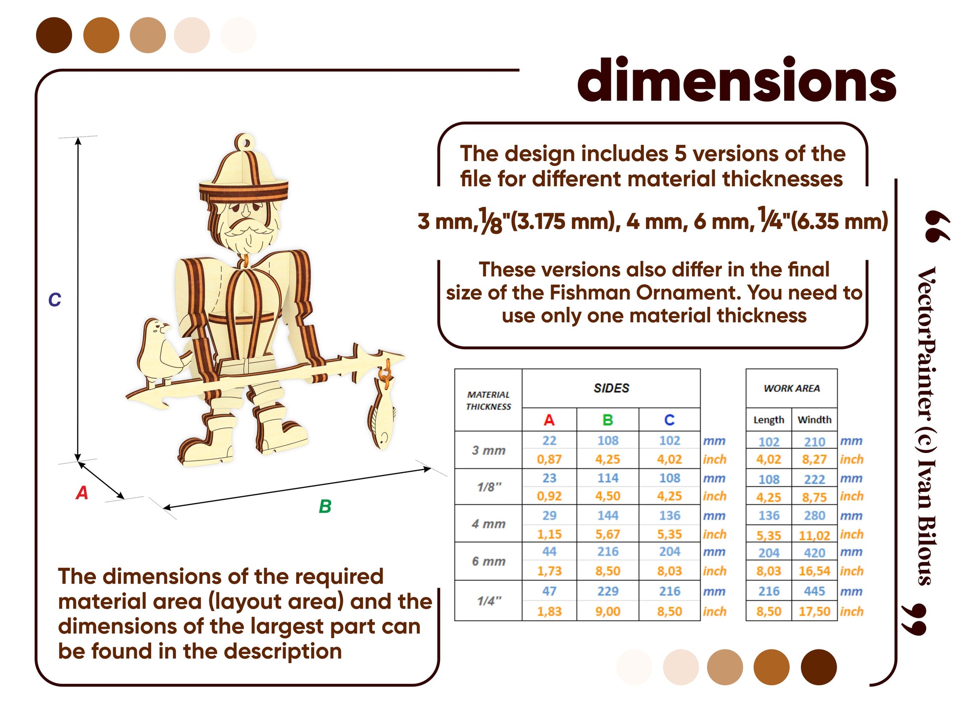 🤏Material thickness (versions of the files): 3mm, 1/8''(3.175mm), 4mm, 6mm, 1/4''(6.35mm)