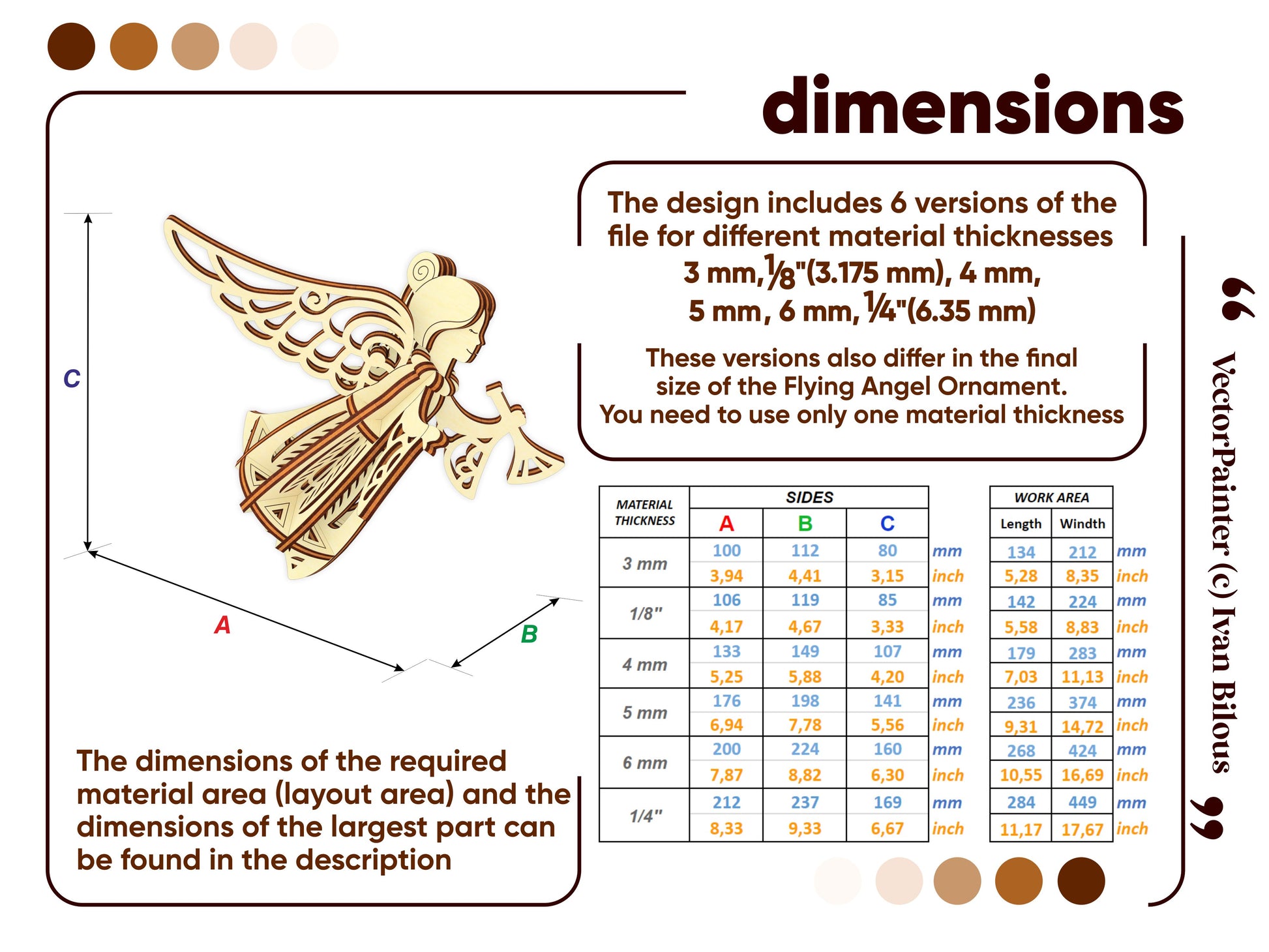 🤏Material thickness (versions of the files): 3 mm, 1/8'' (3.175 mm), 4 mm, 5 mm, 6 mm, 1/4'' (6.35 mm)