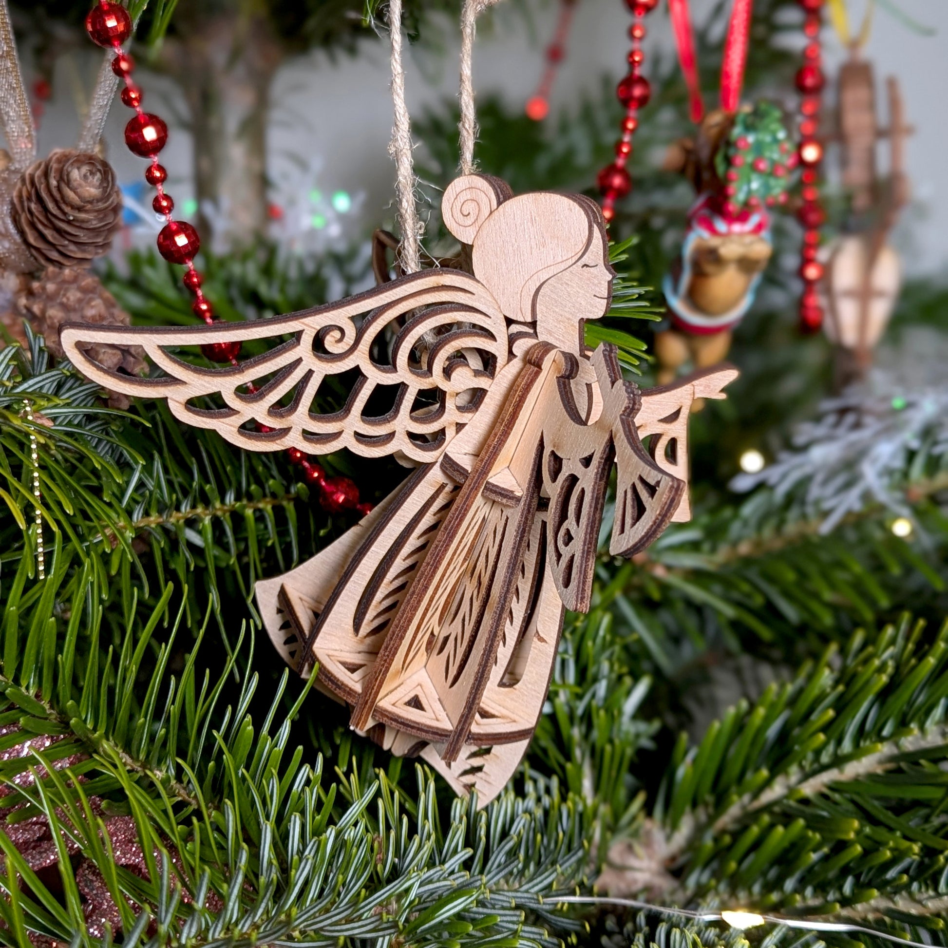 This exquisite Flying Angel Ornament is a laser cut design that beautifully captures the elegance and grace of an angel in flight. Perfect for adding a touch of celestial charm to your Christmas tree, wreath, or festive display, the ornament includes a convenient hole for easy hanging on a string or ribbon