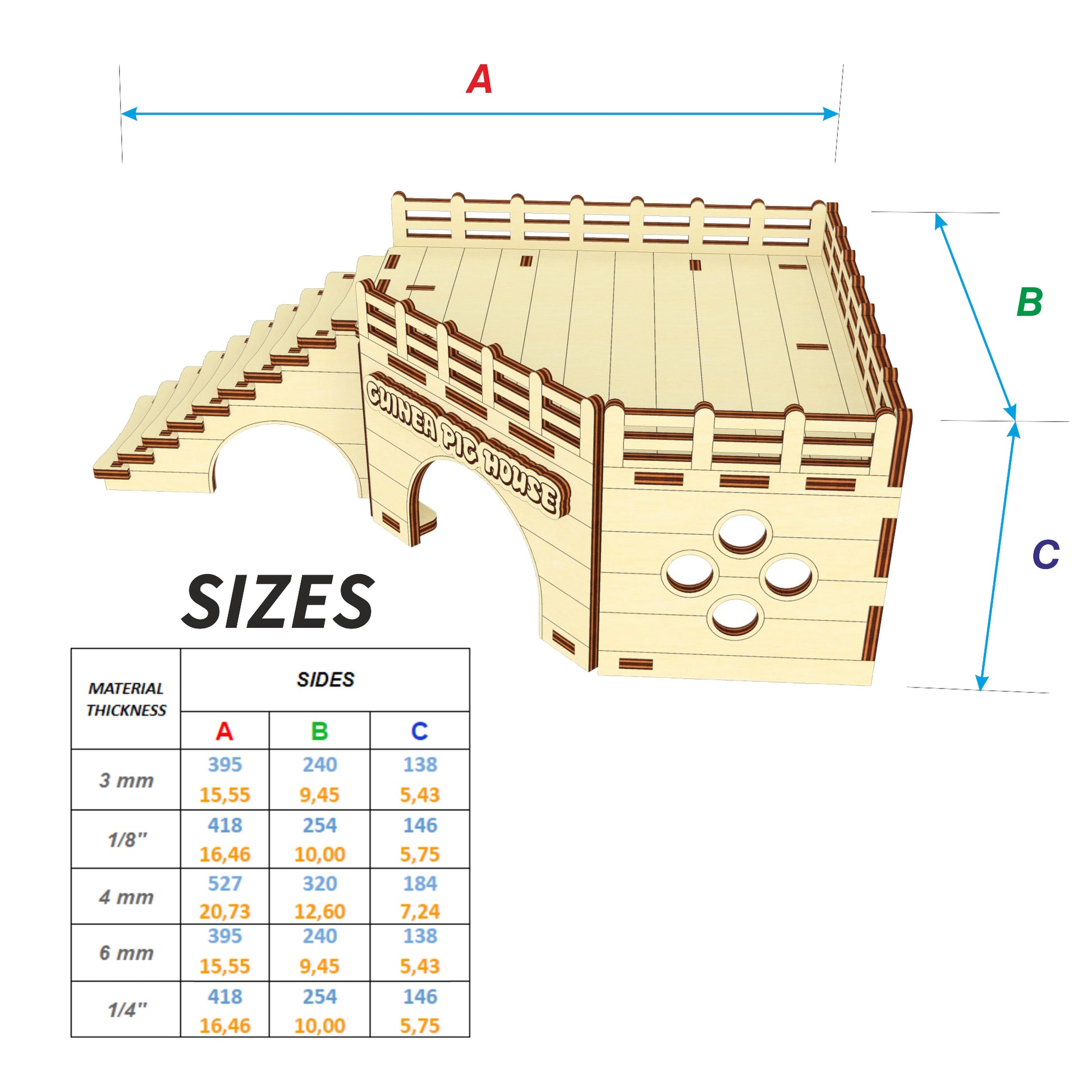 🤏Material thickness (versions of the files): 3mm, 1/8''(3.175mm), 4mm, 6mm, 1/4''(6.35mm)