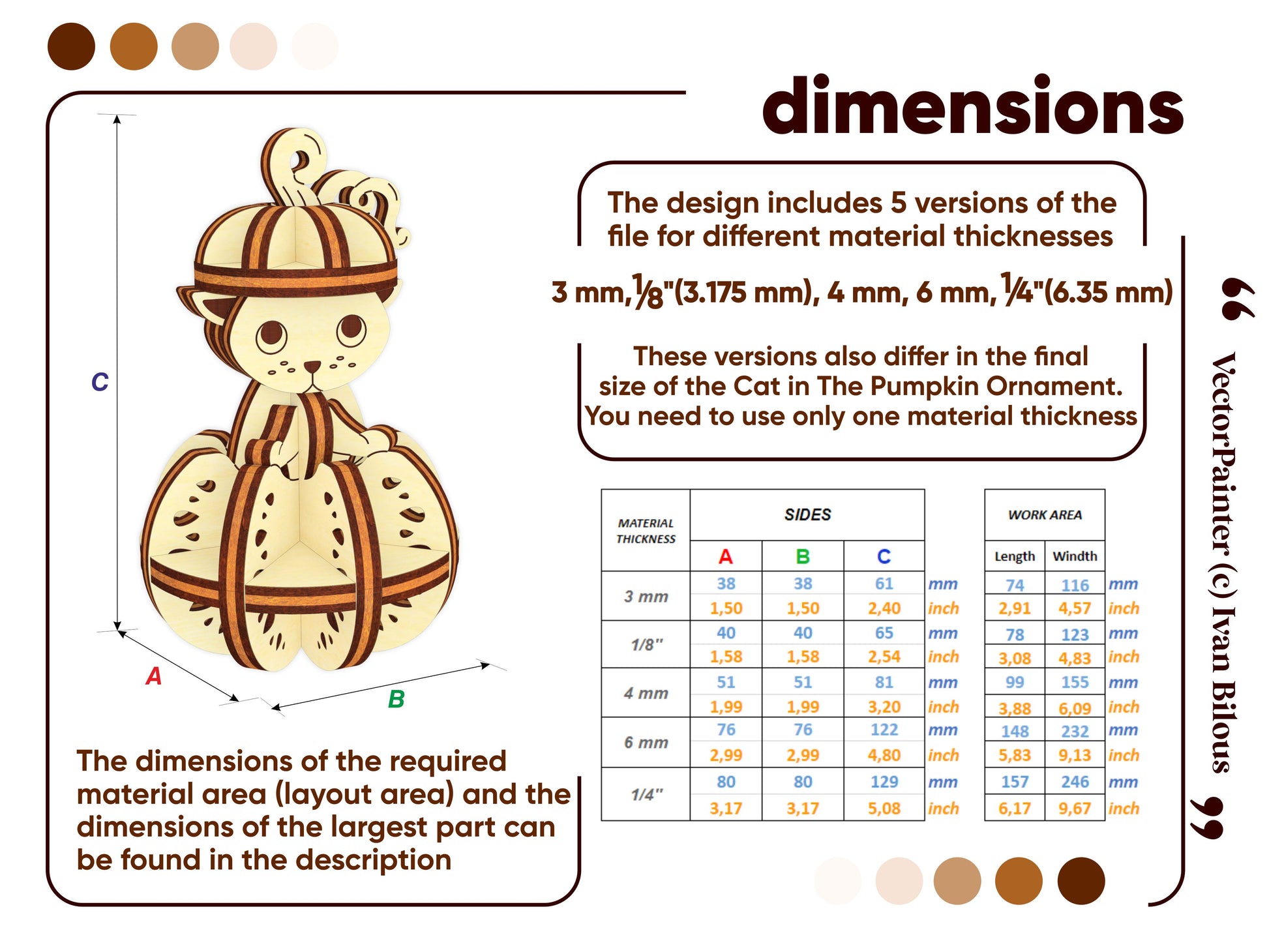 🤏Material thickness (versions of the files): 3mm, 1/8''(3.175mm), 4mm, 6mm, 1/4''(6.35mm)