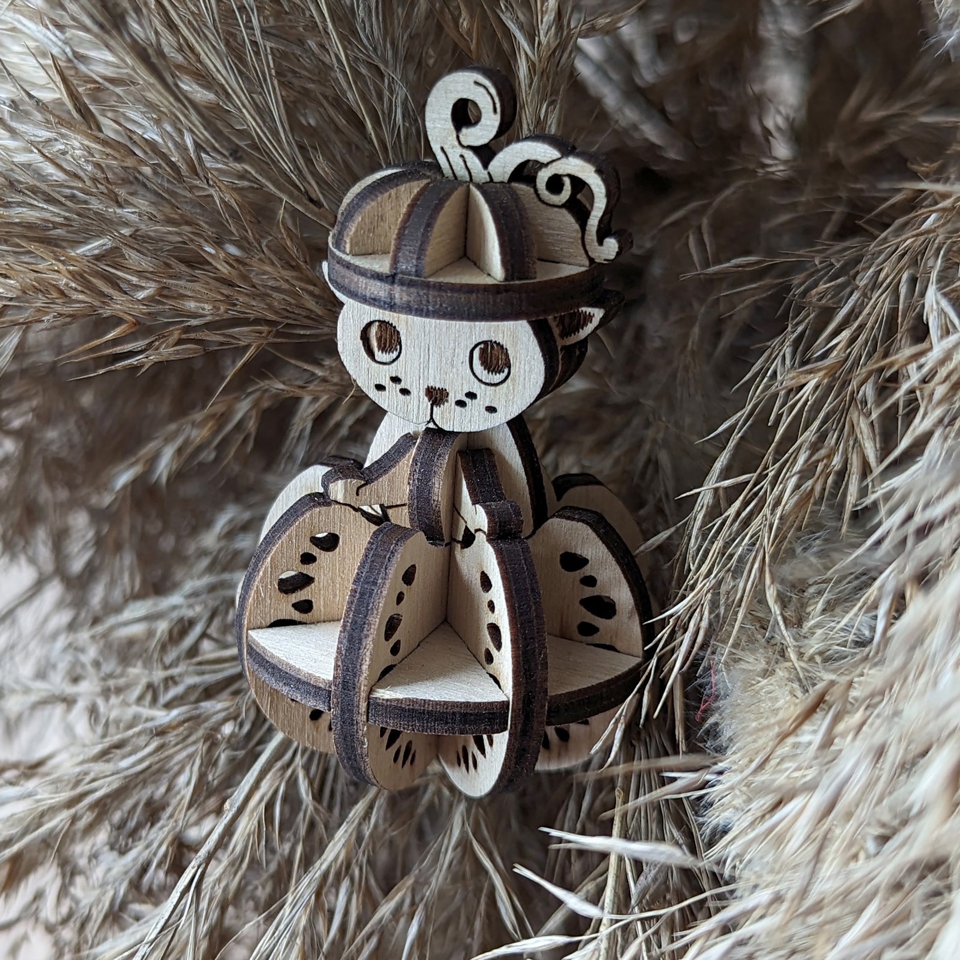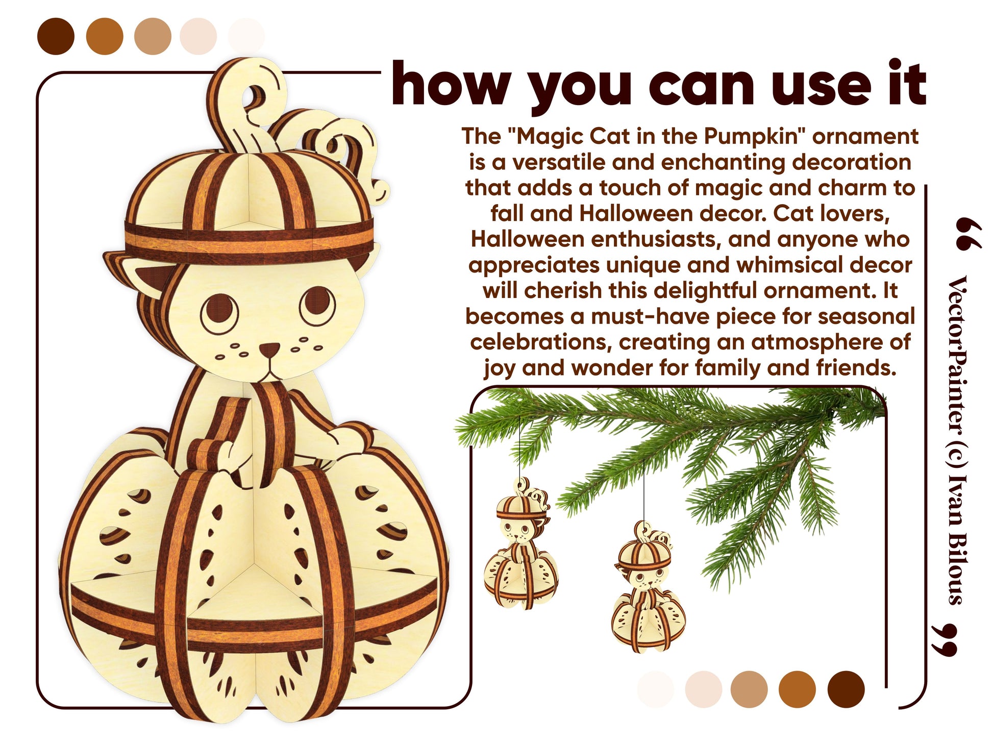 Introducing the "Magic Cat in the Pumpkin" ornament, a charming and delightful creation depicting a plywood cat nestled within a whimsical pumpkin. This enchanting ornament captures the essence of fall and magic, making it a perfect addition to your Halloween and autumn decor. Crafted with precision, the intricate plywood design showcases the elegance of laser cuts. For convenience, the ornament comes with laser cut files provided in SVG, DXF, AI, and CDR formats, enabling easy replication of this enchanting piece. With its playful charm and captivating design, the "Magic Cat in the Pumpkin" ornament brings a touch of enchantment and joy to your home during this magical season.