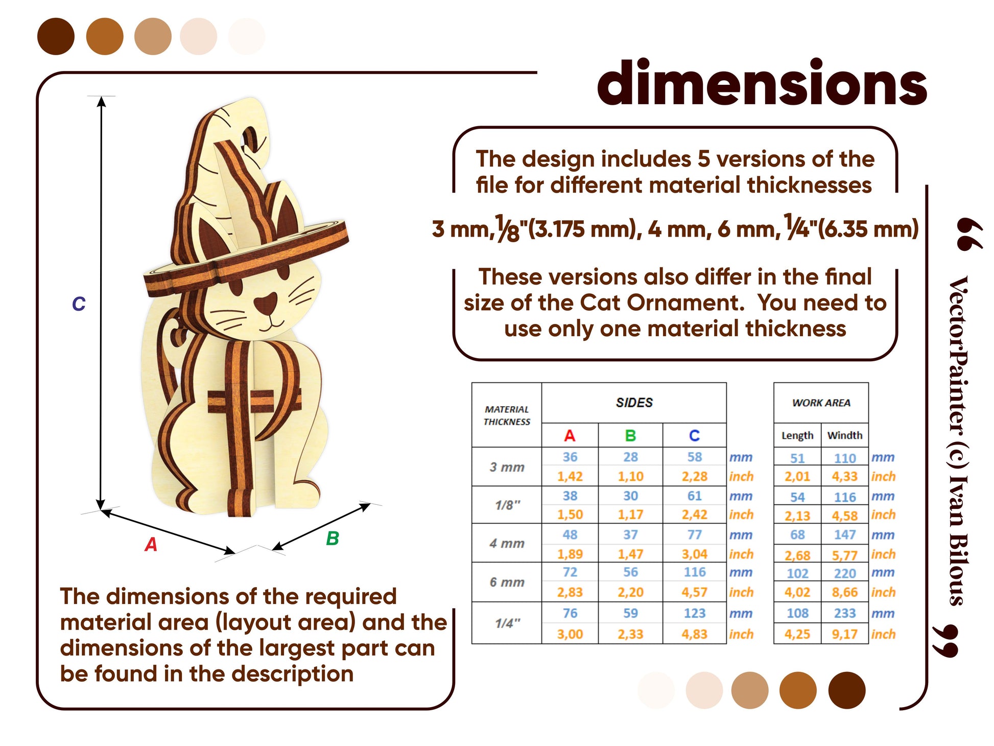 🤏Material thickness (versions of the files): 3mm, 1/8''(3.175mm), 4mm, 6mm, 1/4''(6.35mm)