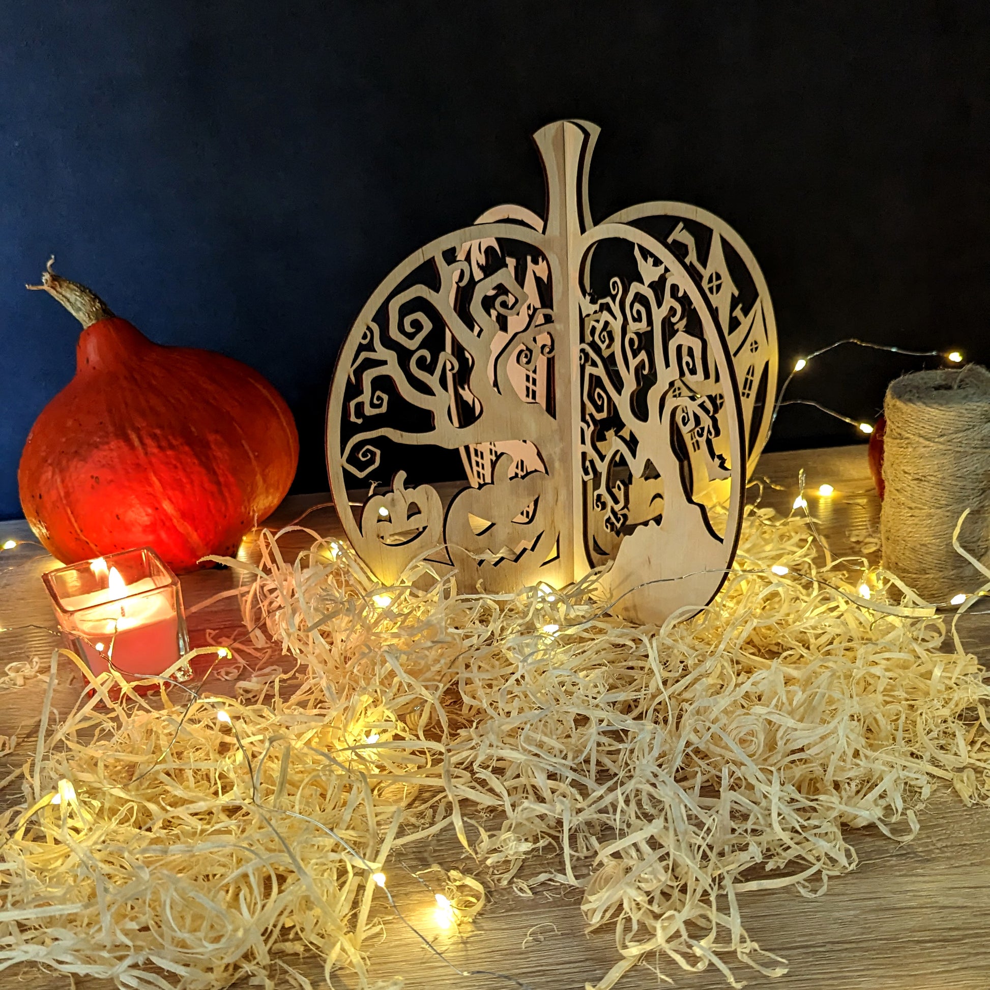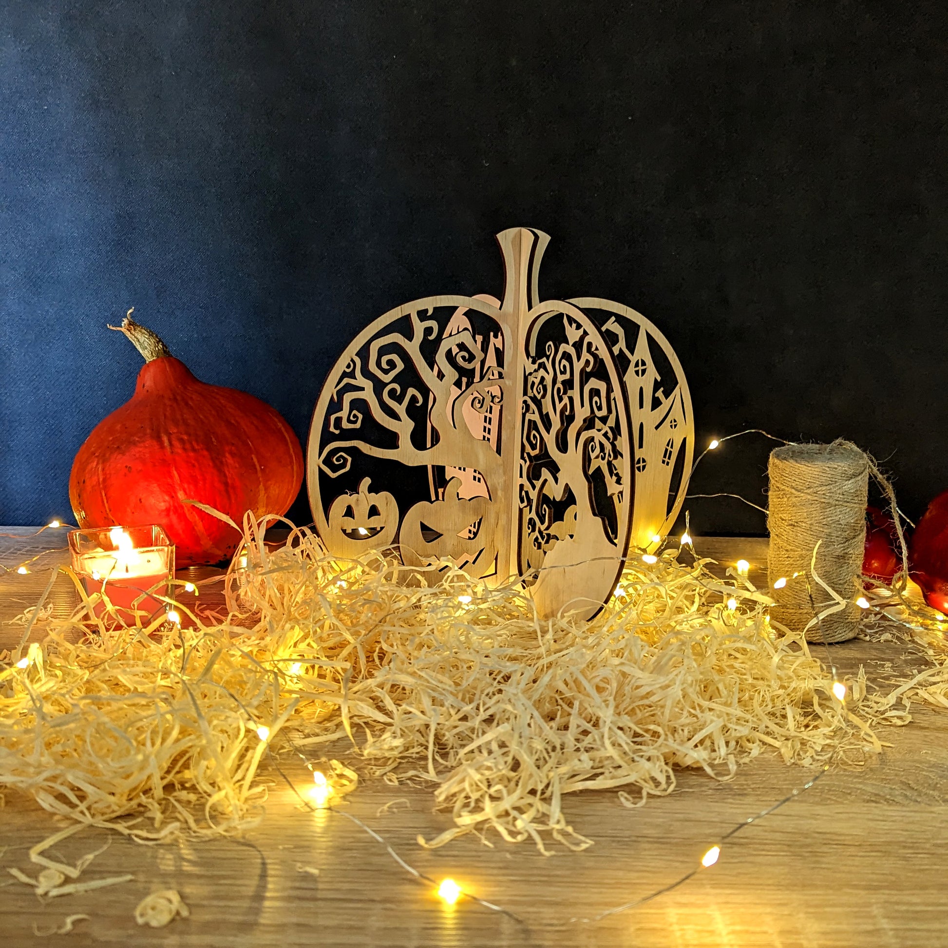 Spooky Elegance: Laser Cut Halloween Pumpkin Design - Transform your Halloween decor with this intricately designed laser cut pumpkin. Elevate your spooky festivities with this elegant ornament that blends intricate detailing with the spirit of the season. Its precision-cut design captures the essence of Halloween, making it a versatile addition to your festivities. Hang it, display it, or use it as a charming centerpiece to add a touch of spooky elegance to your Halloween celebrations. Perfect for parties, home decor, and gifting! 🦇🍂