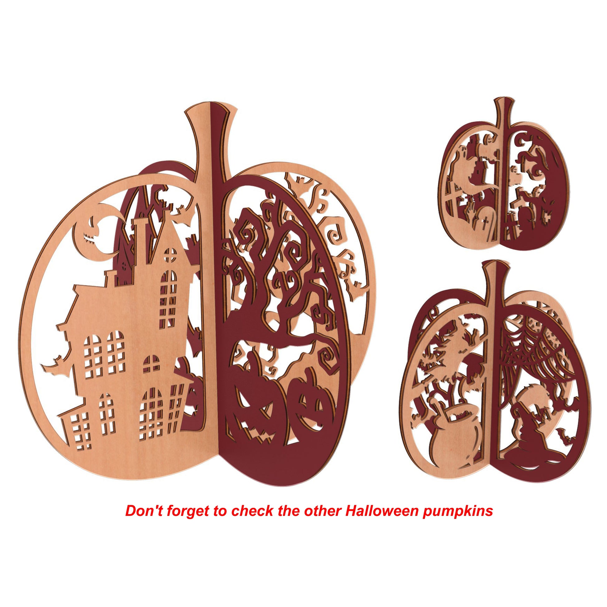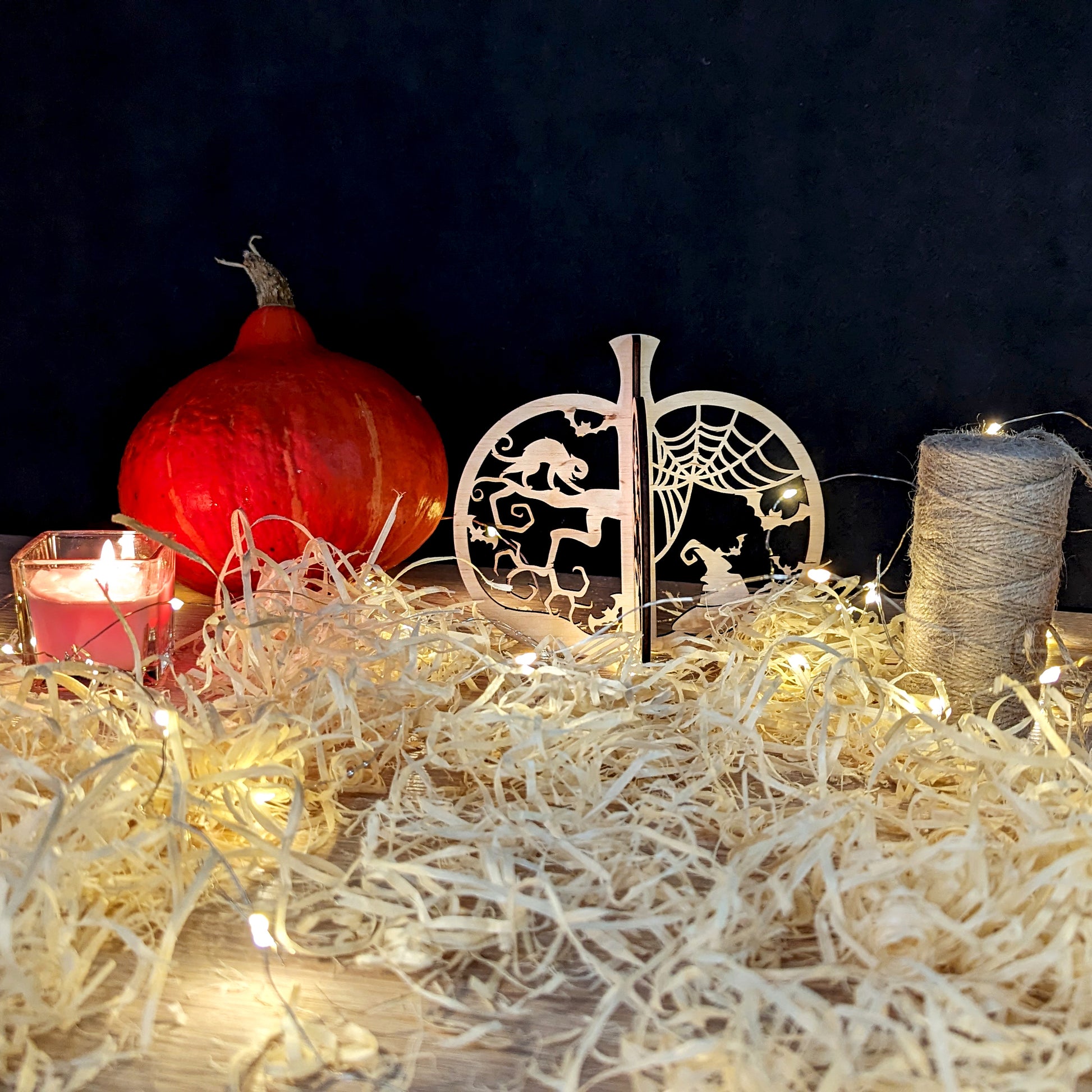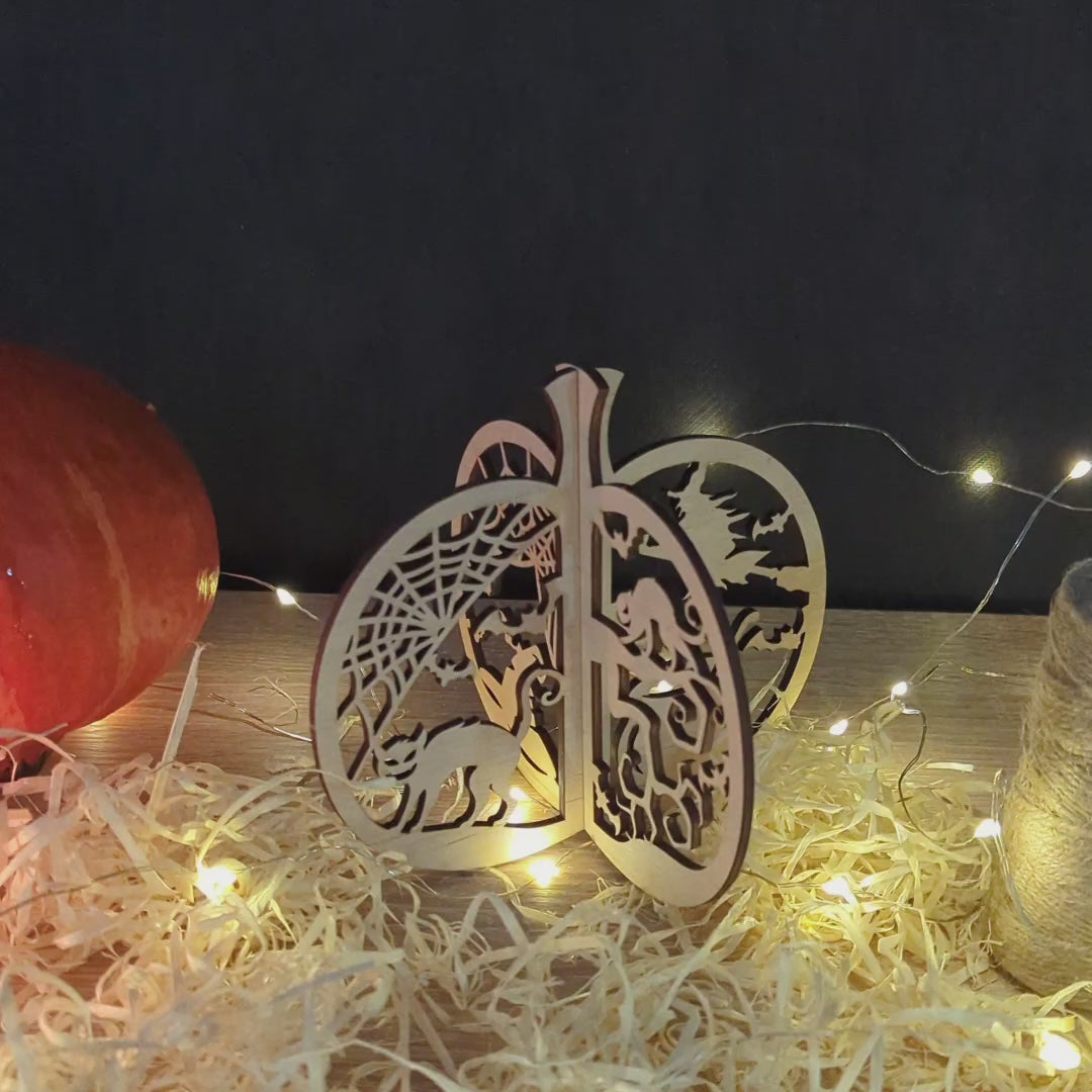 Spooky 3D Halloween Pumpkin Laser Cut File - Unleash your creativity with this 3D laser cut Pumpkin design with a witch, a cauldron, a spider web, and a mischievous black cat. Craft a bewitching masterpiece that captures the essence of Halloween in intricate detail. This laser cut file allows you to create a dimensional pumpkin ornament that will haunt your decor with spooky charm. Get ready to cast a spell on your Halloween celebrations! 🧙♀️🕷️🐱🎃