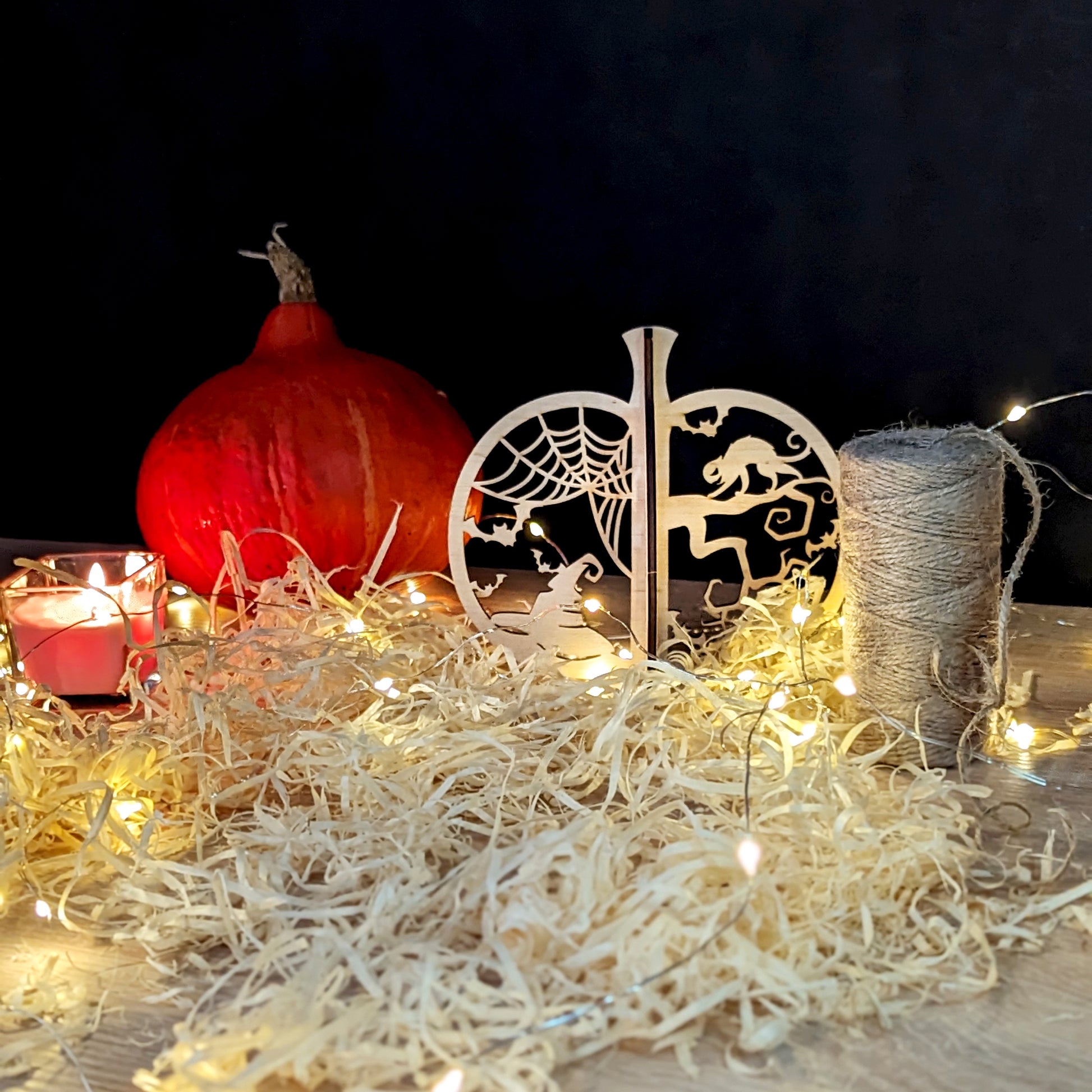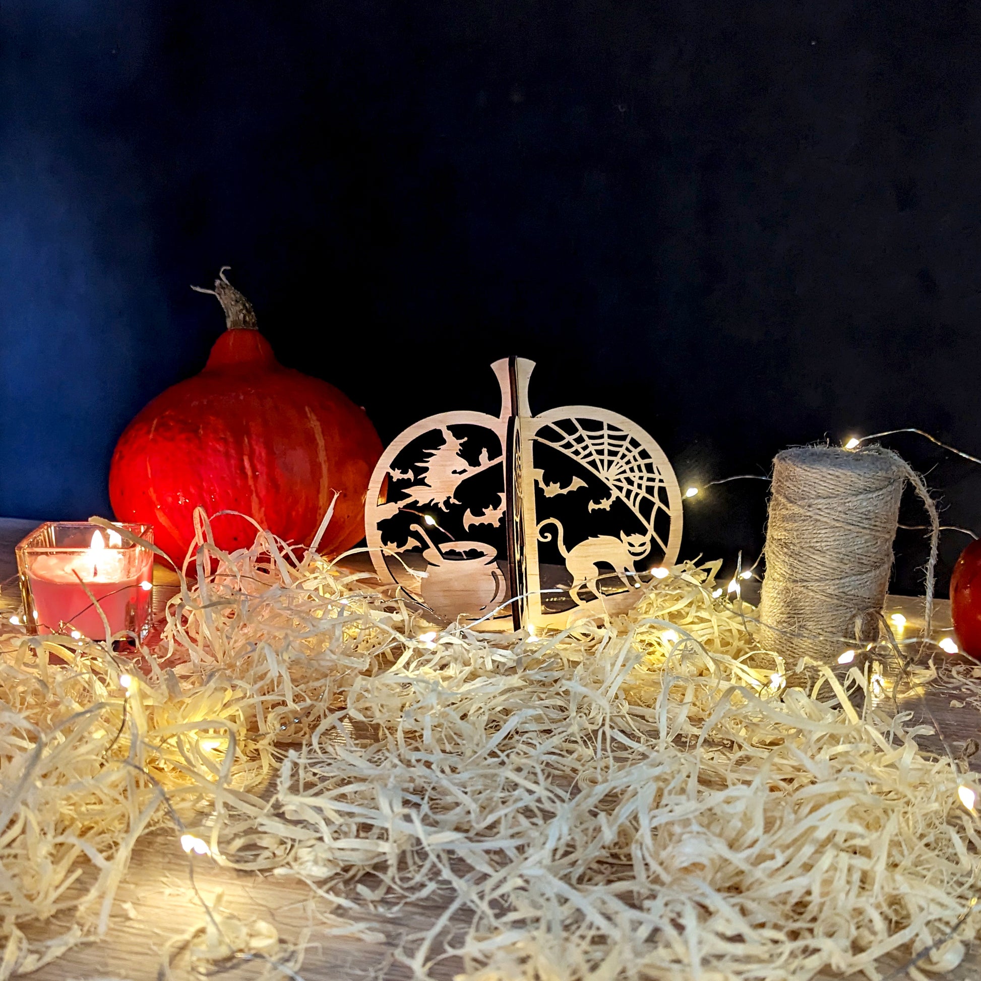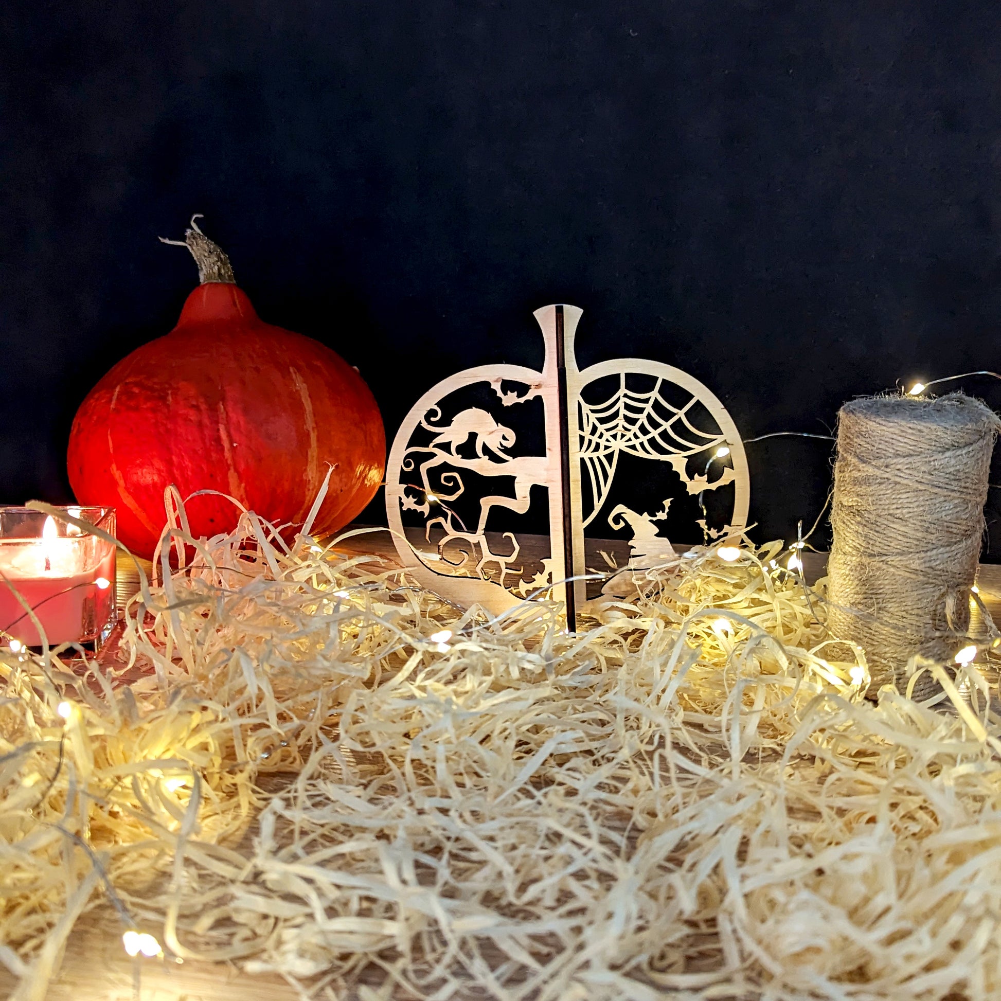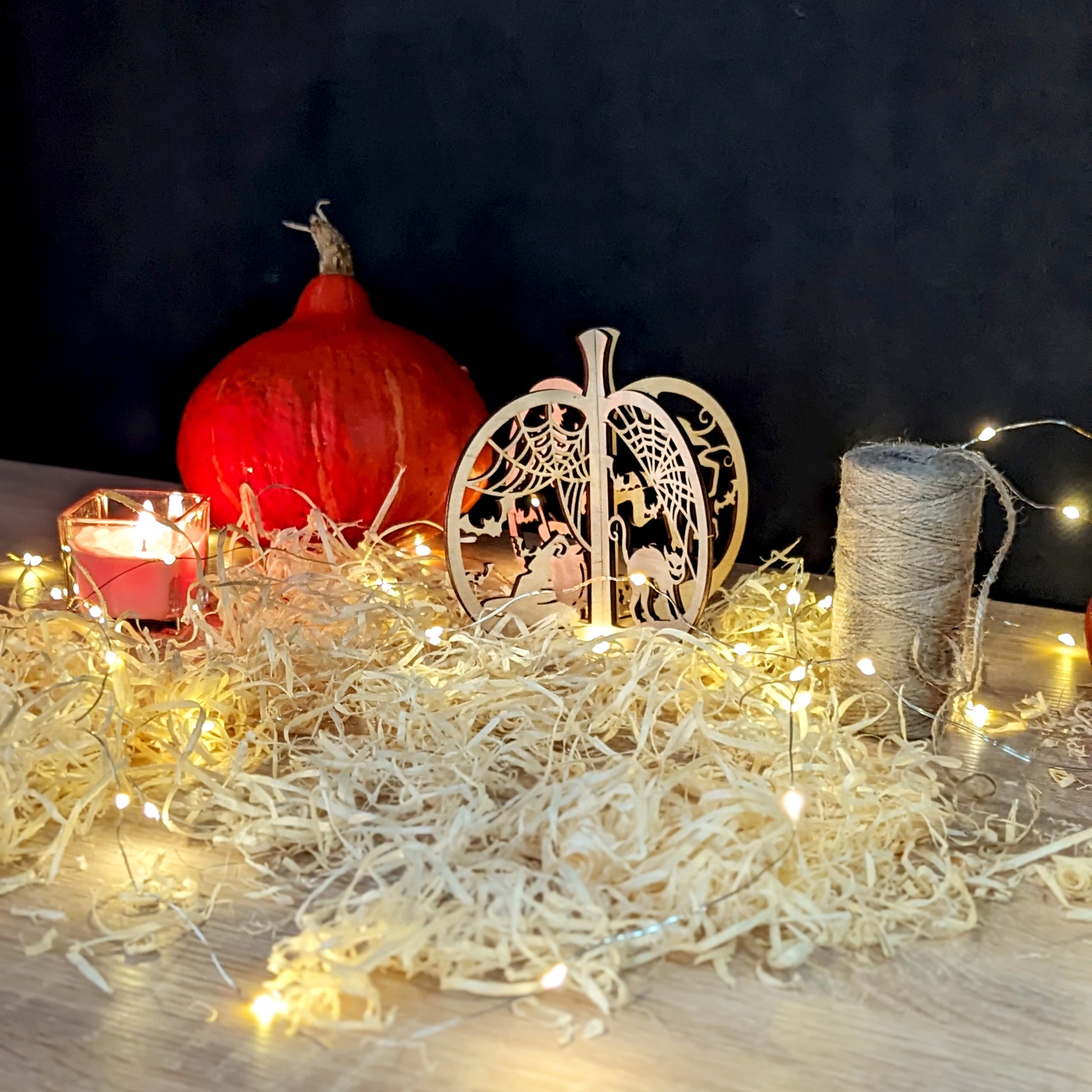 Spooky 3D Halloween Pumpkin Laser Cut File - Unleash your creativity with this 3D laser cut Pumpkin design with a witch, a cauldron, a spider web, and a mischievous black cat. Craft a bewitching masterpiece that captures the essence of Halloween in intricate detail. This laser cut file allows you to create a dimensional pumpkin ornament that will haunt your decor with spooky charm. Get ready to cast a spell on your Halloween celebrations! 🧙♀️🕷️🐱🎃