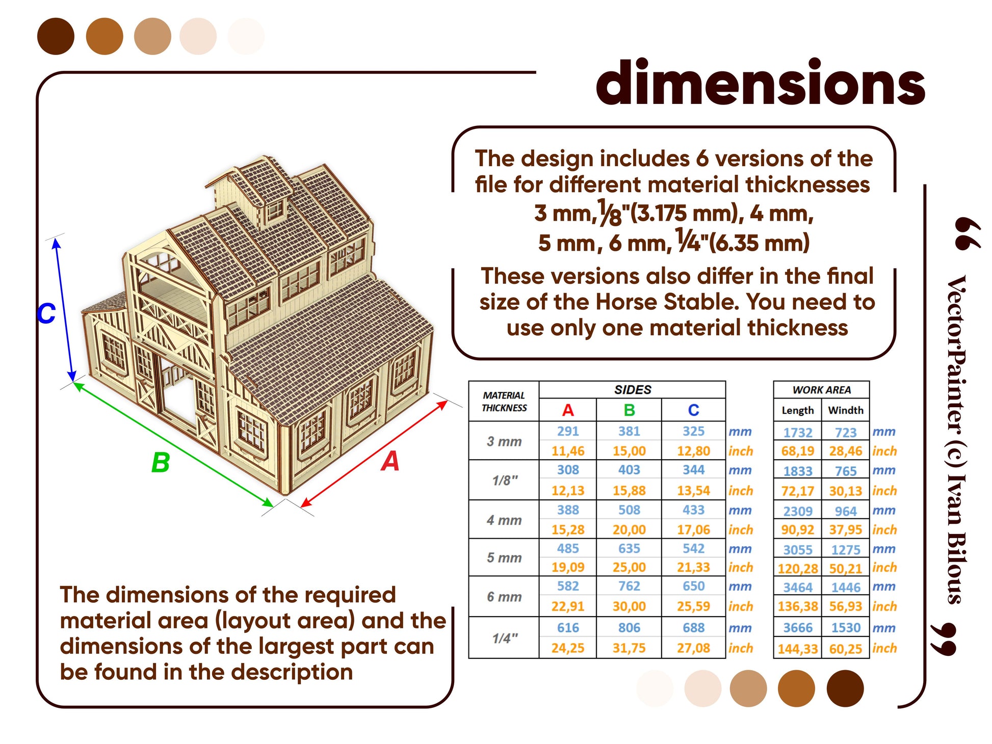 🤏Material thickness (versions of the files): 3 mm, 1/8'' (3.175 mm), 4 mm, 5 mm, 6 mm, 1/4'' (6.35 mm)