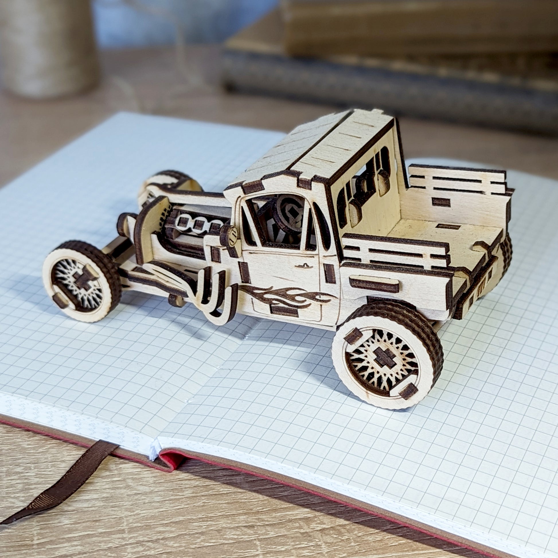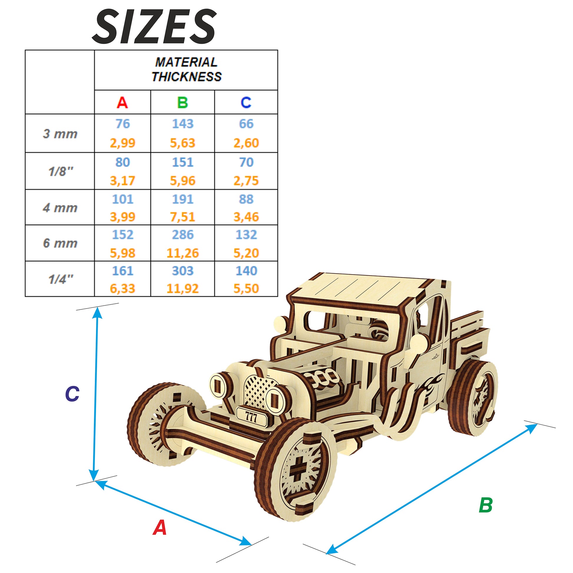 Introducing the highly detailed hot rod car miniature plan for laser cutting! This intricate design brings the classic hot rod to life with exceptional attention to detail. You'll be amazed at the level of detail in this plan, including the engine, wheels that actually turn, and an open trunk. The sides of the car feature a fiery engraving that adds an extra touch of excitement to this miniature design. Whether you're a car enthusiast or simply appreciate the beauty of intricate laser-cut miniatures, this plan is a must-have. The plan is delivered in a digital format, making it easy for you to start creating your hot rod car miniature right away. So why wait? Get your hands on this plan today and bring your love for hot rods to life with this stunning, highly detailed miniature.