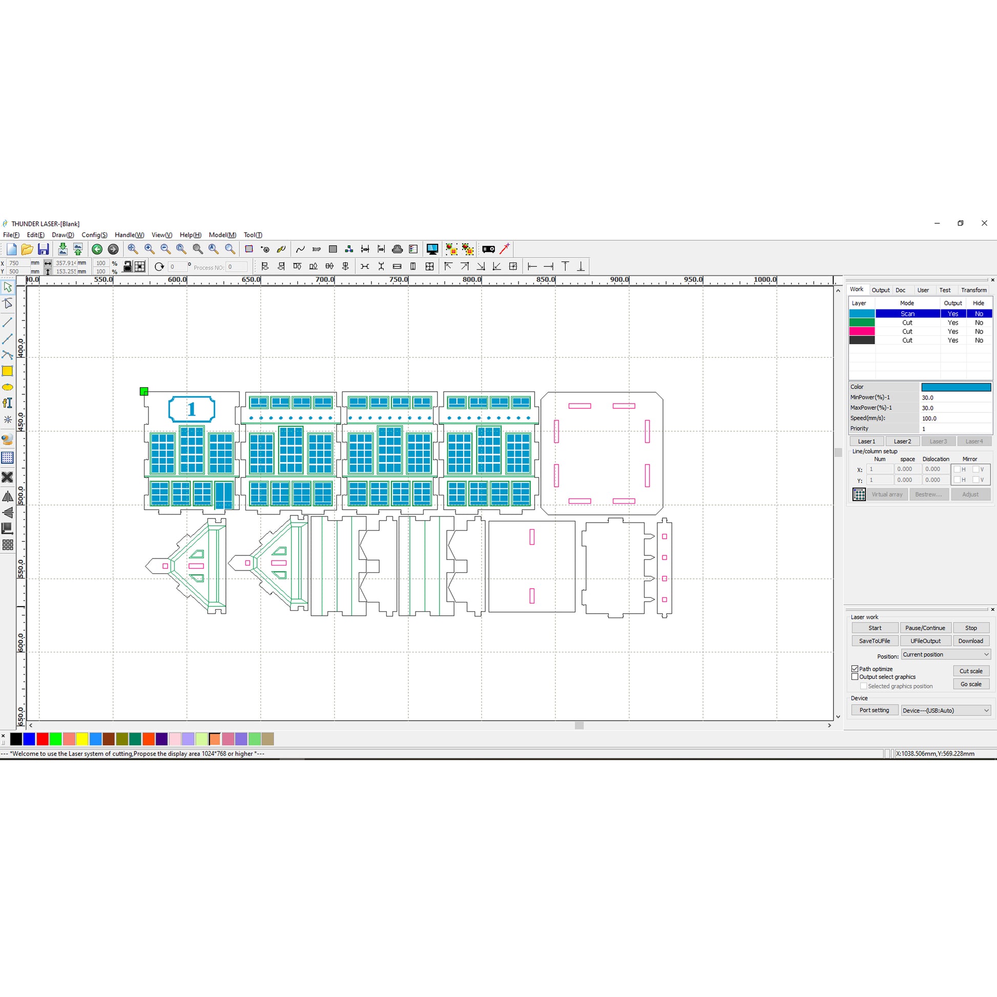 green color - score (cut mode with low power and high speed)
